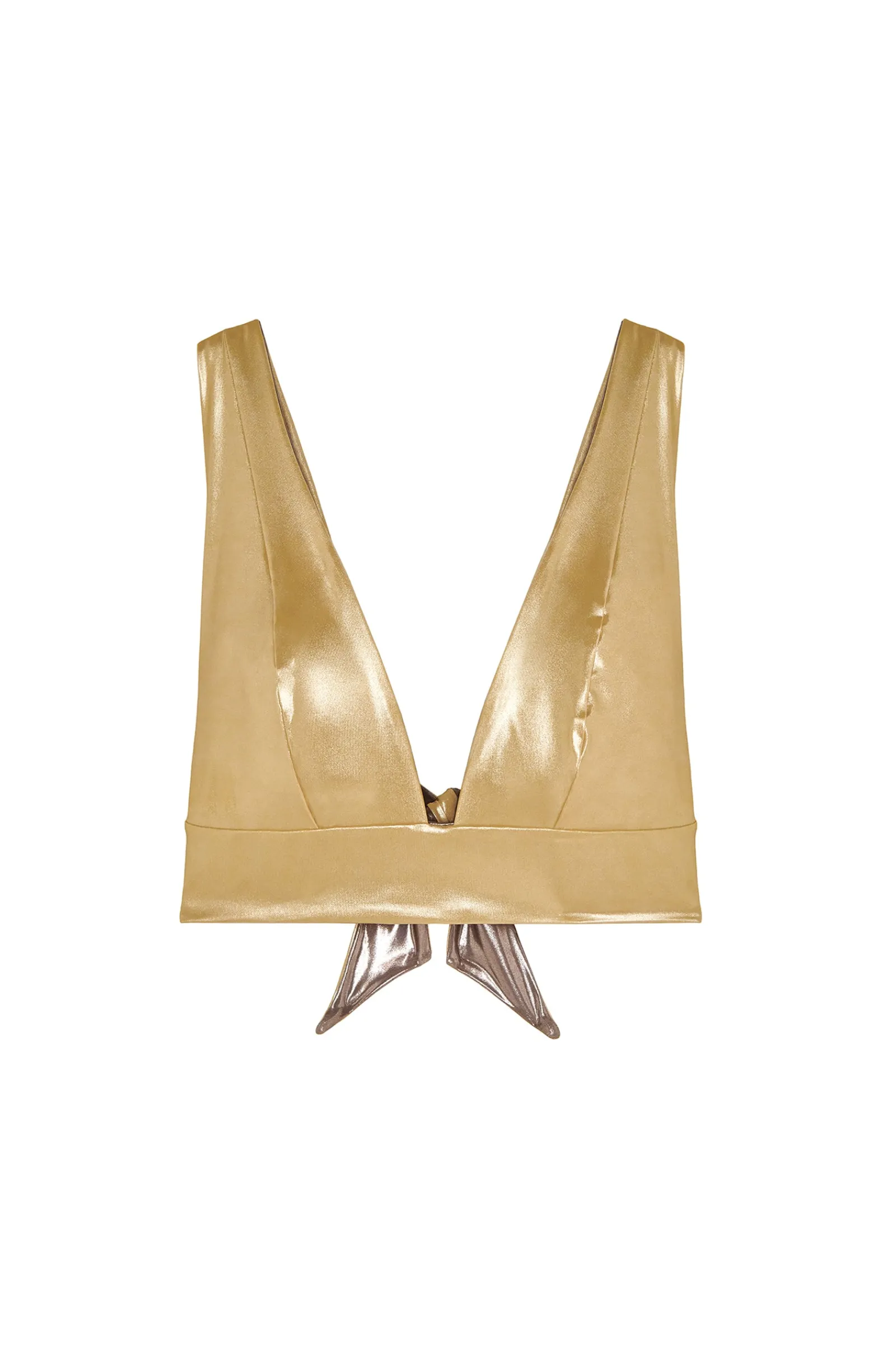 Ce haut de maillot brassière ORAPH or se fait parure… Il révèle notre teint hâlé et met en valeur le galbe de notre poitrine. Il convient à toutes les morphologies grâce à ses larges bretelles et sa bande sous poitrine. On craque pour son côté réversible, tantôt or tantôt bronze, selon nos humeurs ! Il possède un beau décolleté plongeant dans le dos pour un effet digne d’une naïade sortie des eaux.