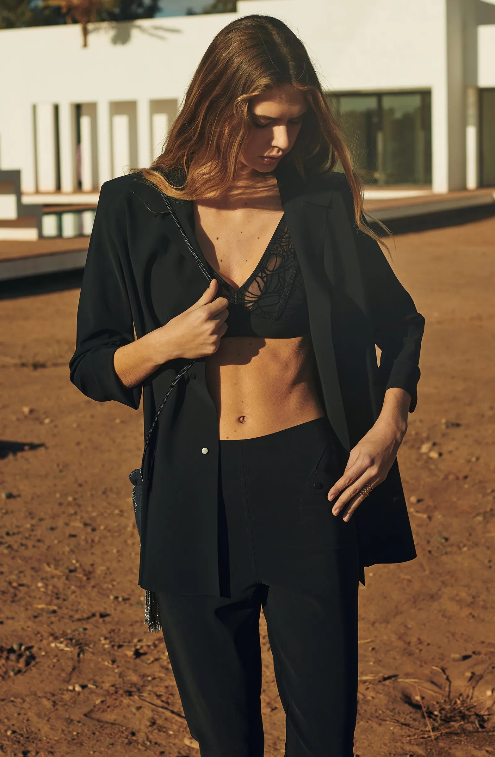 Équilibre parfait entre décontraction et allure, le blazer Blake structure une silhouette affirmée. Taille oversize, large encolure, épaulettes gonflées, poches en trompe-l’œil, cette pièce de caractère allie, avec style, élégance et liberté. Le noir, une couleur intemporelle.
