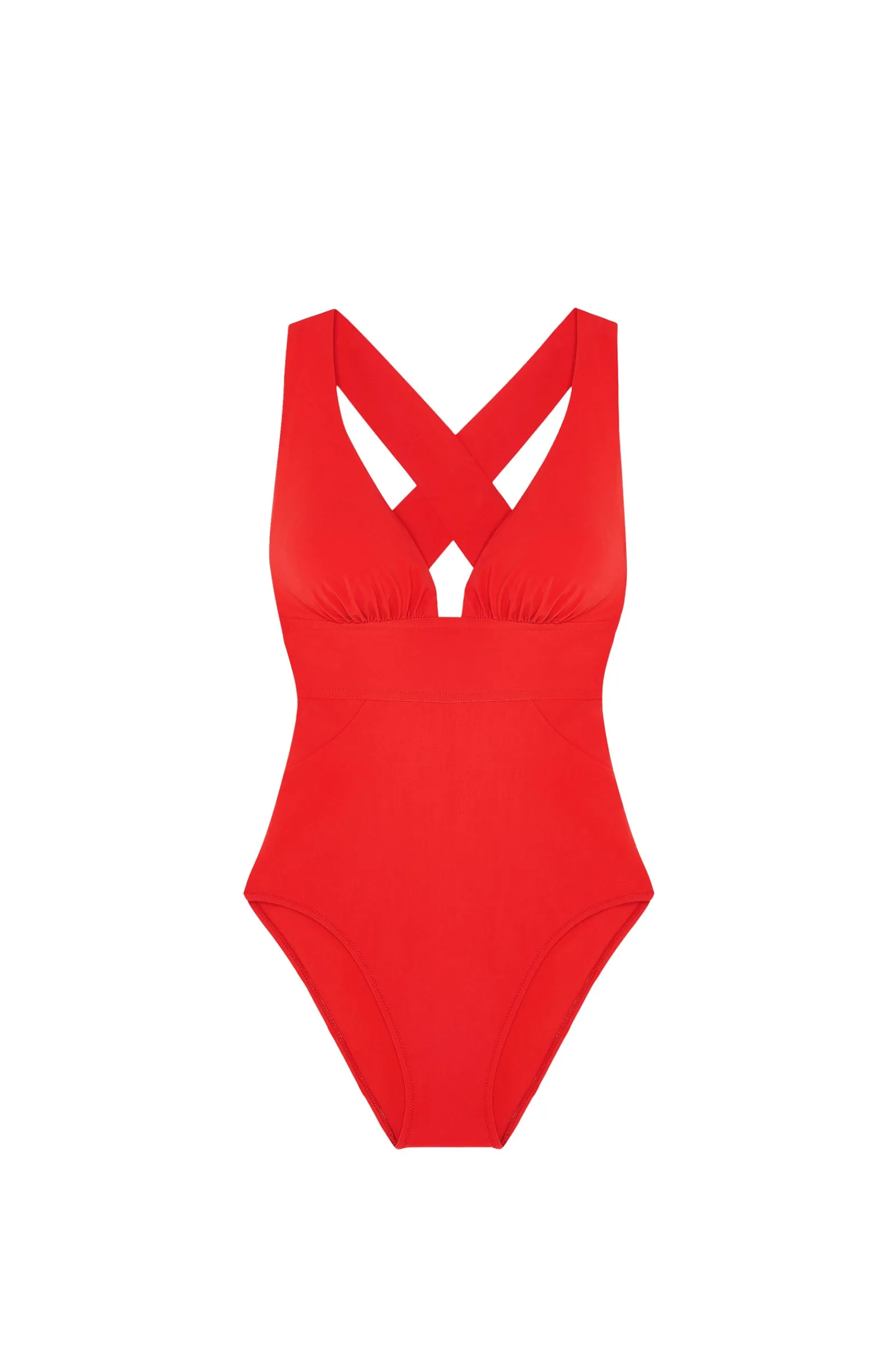 À la frontière entre le body et le maillot de bain, le une-pièce CAPRI est un incontournable. Il assure confort et maintien et ses profonds bonnets drapés subliment toutes les poitrines. Chic et sportswear, ce maillot nageur aux lignes pures et dynamiques, affine la silhouette et galbe les formes. Un rouge éclatant et audacieux, couleur intemporelle du dressing balnéaire.