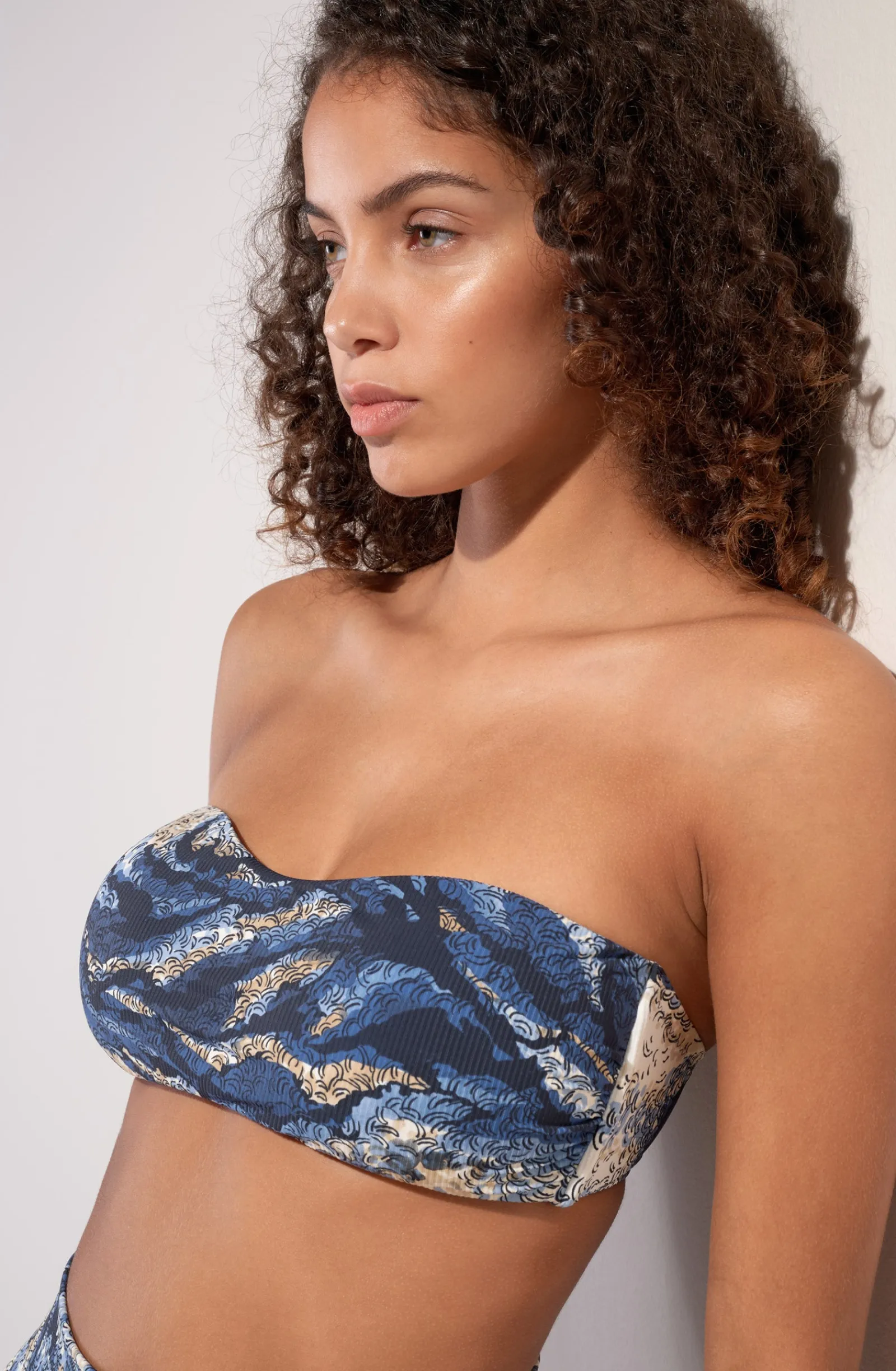 Simple et élégant, le haut de maillot de bain bandeau DAHIA offre un maintien irréprochable. Pour les poitrines menues, des coques amovibles offrent du relief au décolleté. L’imprimé Wave, une nature brute spectaculaire d’inspiration Hokusai qui déclenche des émotions en vague et nous fait chavirer dans le grand bain de l’été.