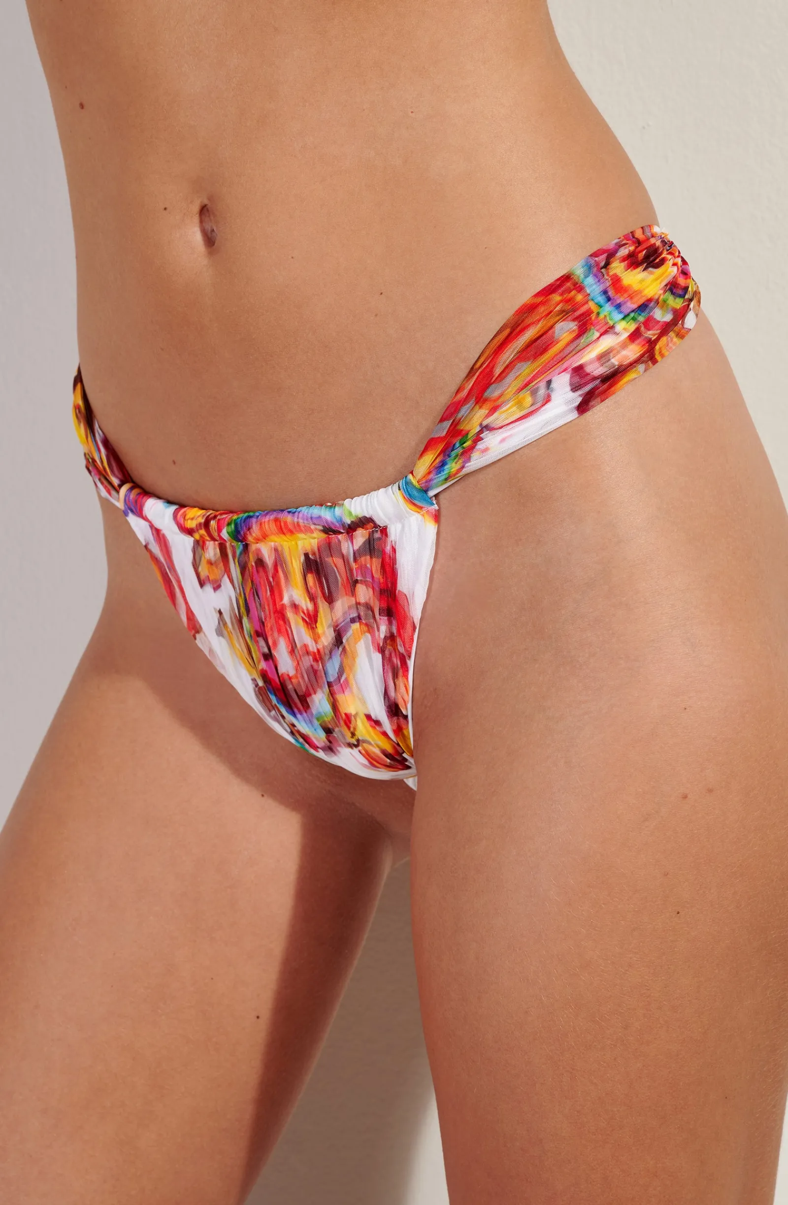 Le bas de maillot en voile plissé DIO se transforme à l’infini. Sur les côtés, un lien, effet foulard, coulisse subtilement pour sublimer les formes. Culotte couvrante, tanga, string échancré, une pièce sophistiquée à porter au gré des envies. L’imprimé Paisley livre une version allégorique des lettres persanes pour un road trip hippie chic.