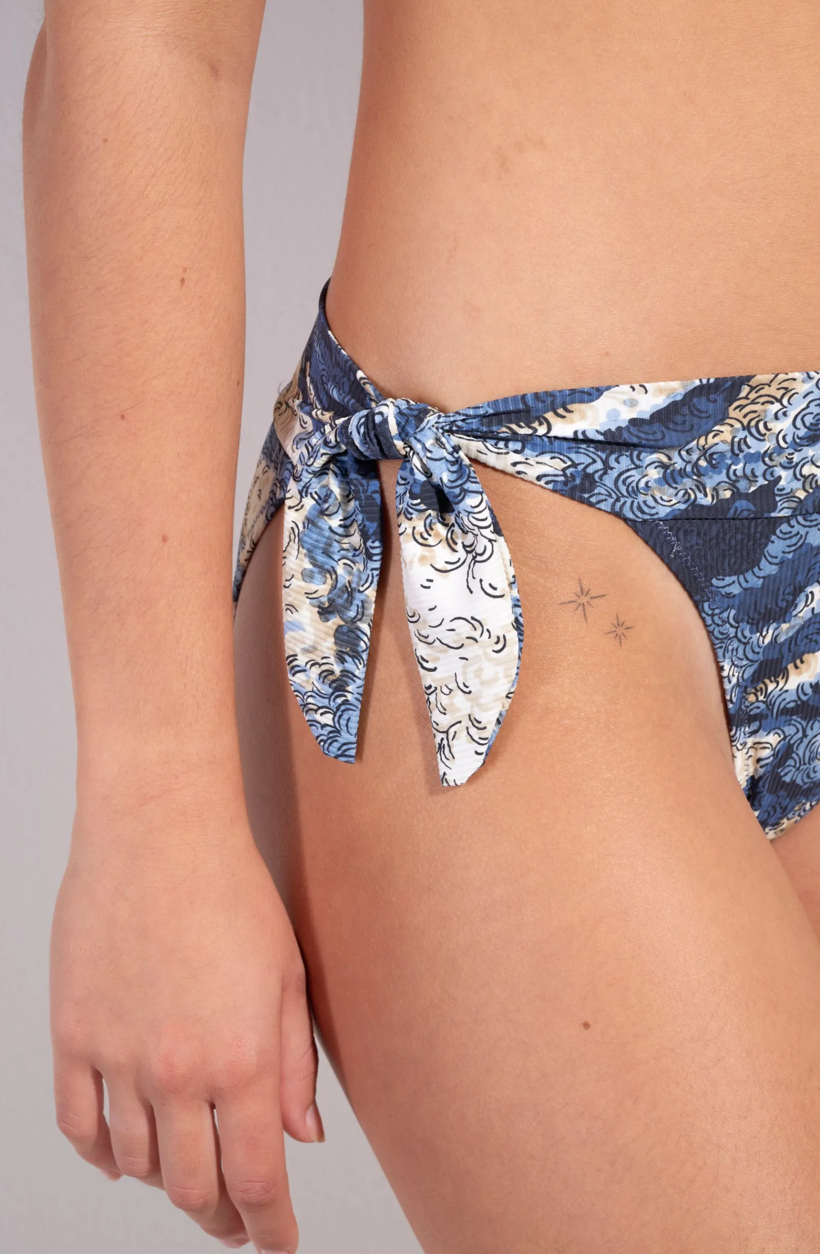 Ajustable à votre guise, le bas de maillot de bain DIVA imprimé s’adapte à toutes les silhouettes ! Les nœuds sur les hanches subliment les formes fines ou plantureuses. L’imprimé Wave, une nature brute spectaculaire d’inspiration Hokusai qui déclenche des émotions en vague et nous fait chavirer dans le grand bain de l’été.