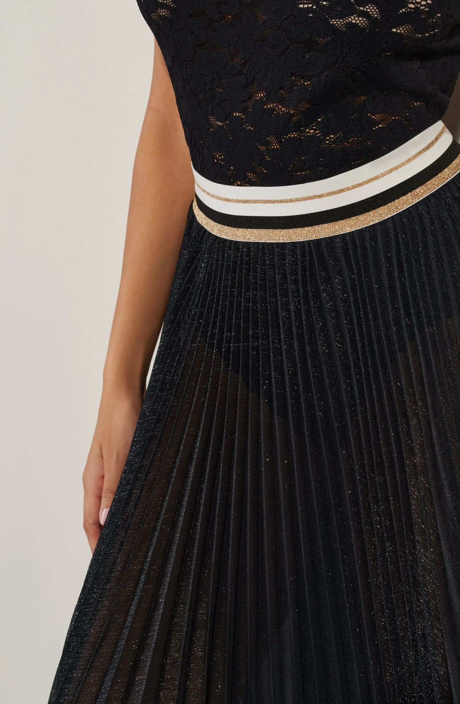 - Large ceinture élastique rayée noir, blanc et lurex doré
