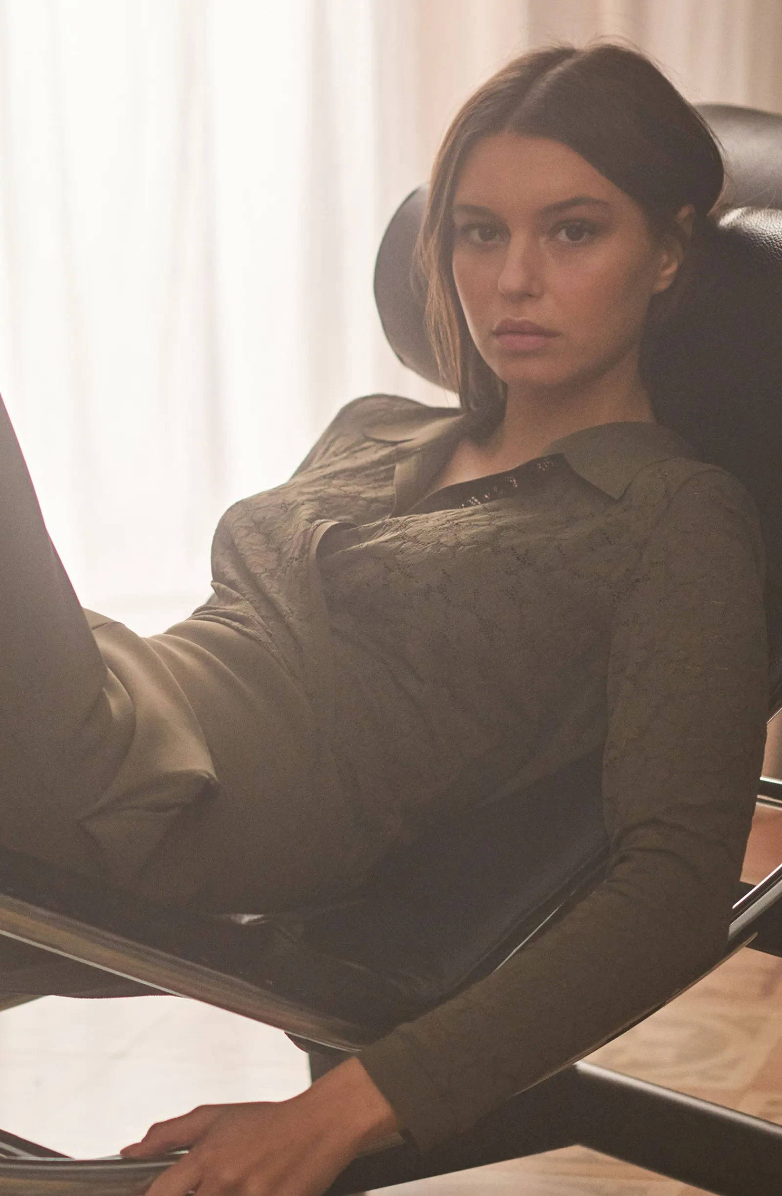 Avec son col et ses poignets en Bonded, le cache-cœur en dentelle LIHO a des airs de chemise. Sa large ceinture se noue facilement pour s’ajuster parfaitement à la taille. Lichen, une teinte organique, vert kaki.