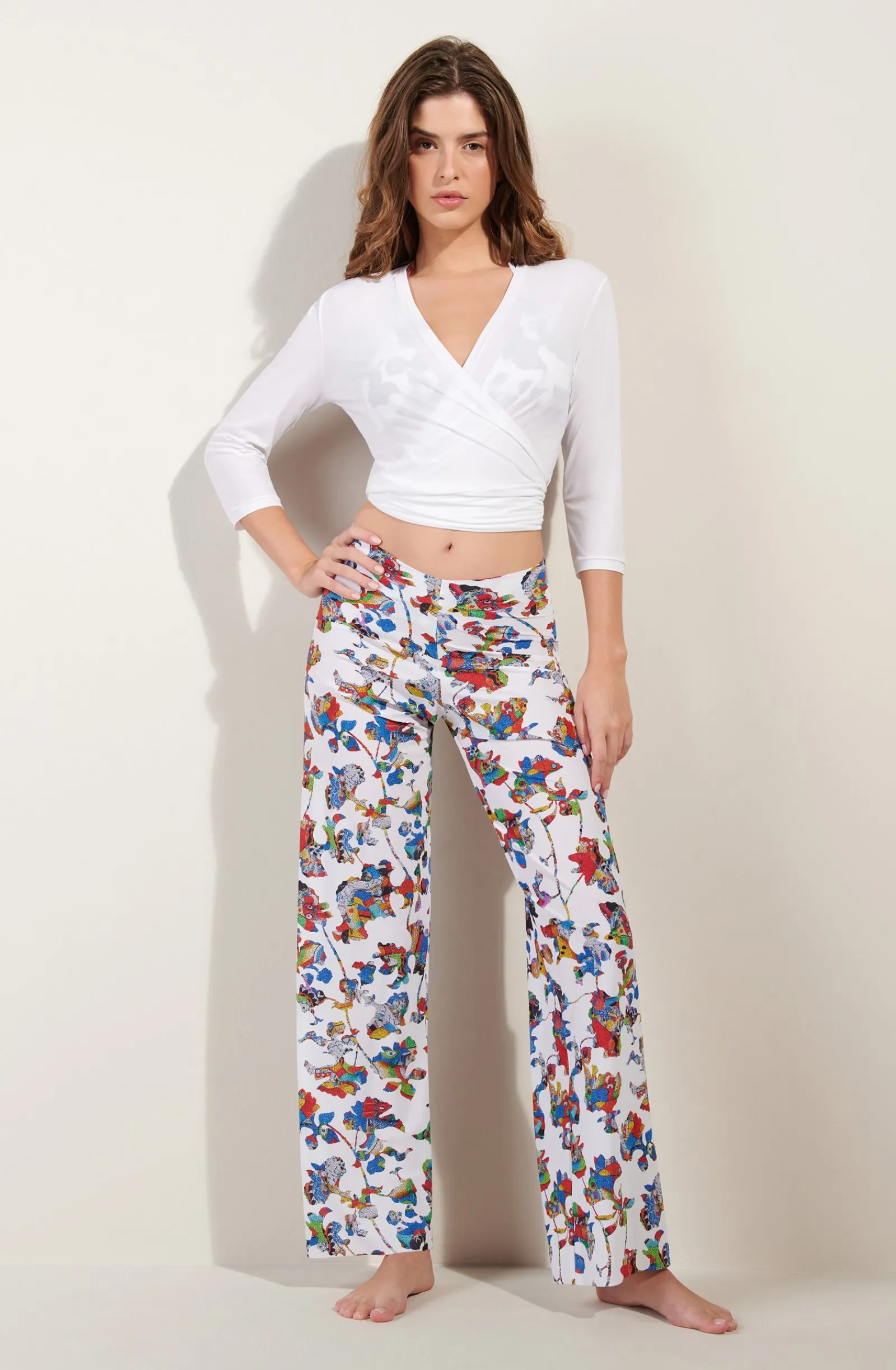 - Haut cache-coeur à manches 3/4 en voile léger extensible