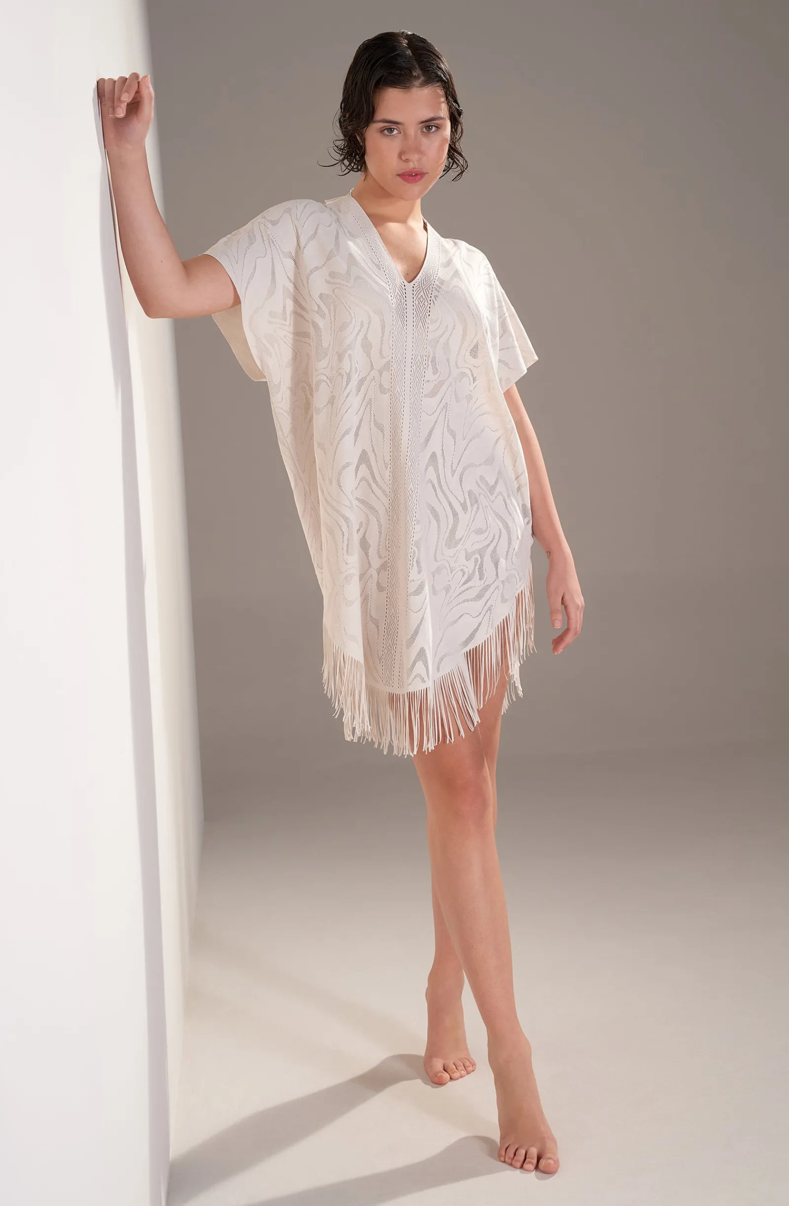 - Poncho à franges en dentelle couvrante
