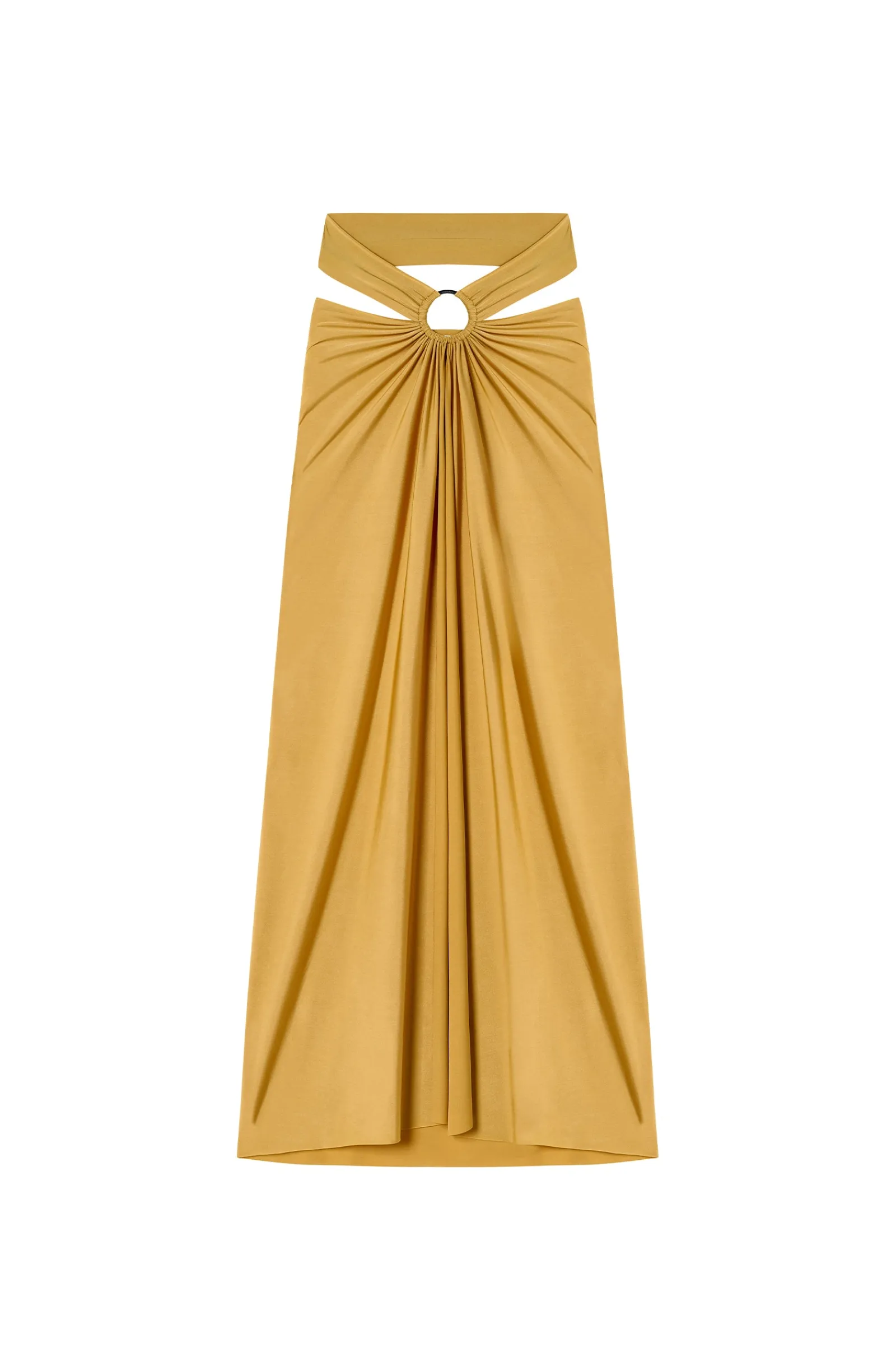 Agrémentée d’un anneau bijou, la jupe paréo PETRA change de style avec élégance. Version jupe, ses lanières s’attachent joliment autour de la taille. Elles se nouent autour des épaules pour une robe de plage bustier à l’allure très féminine. Gold, un jaune doré solaire.