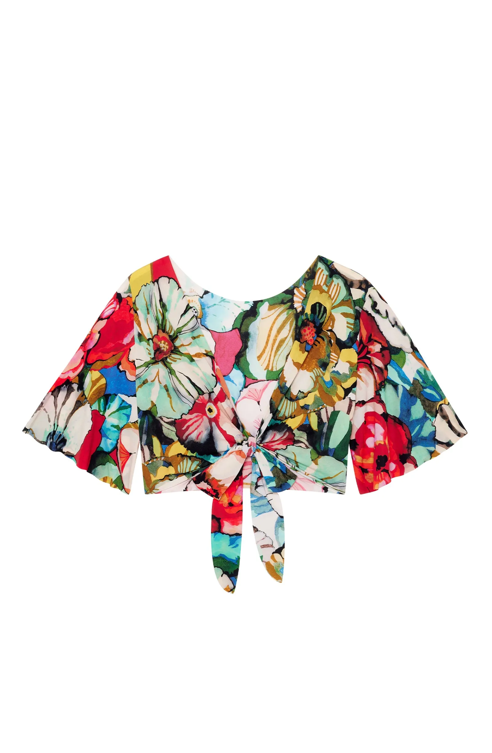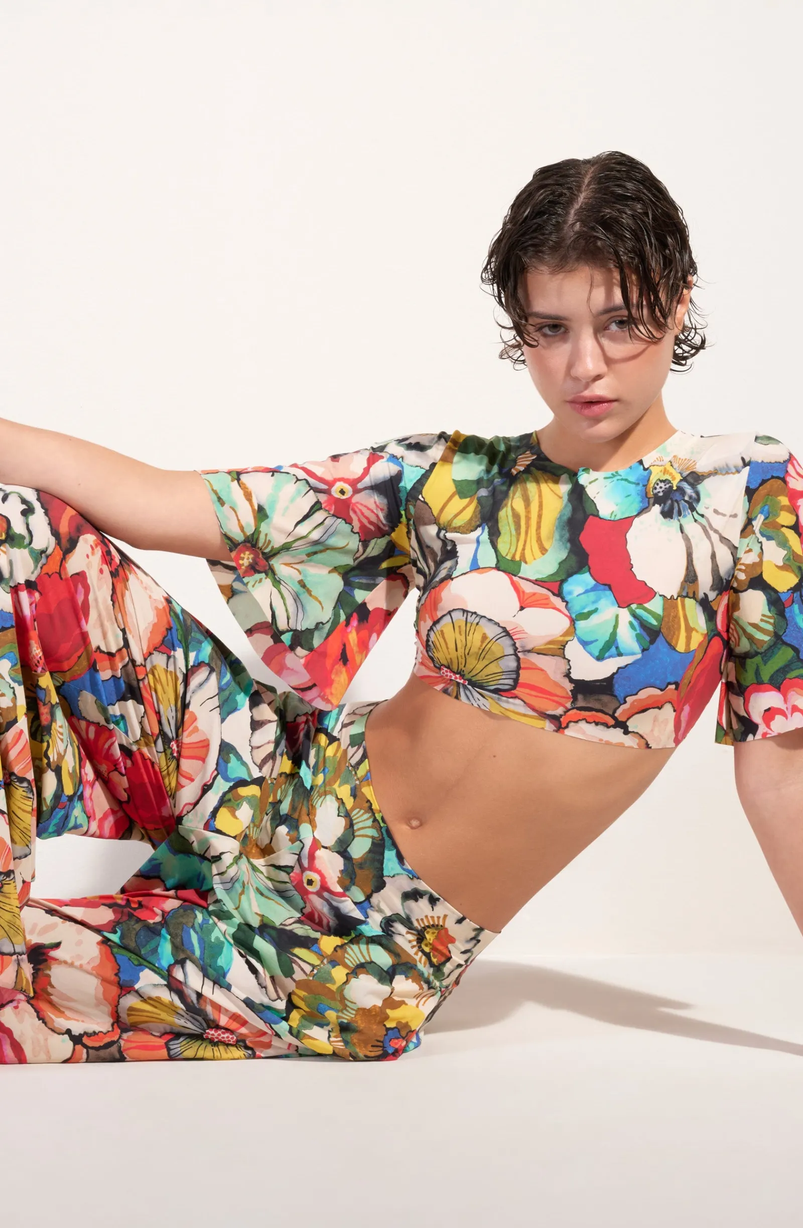 Avec TAINY, le crop-top, effet cache-cœur, fait son retour sur les pavés comme à la plage. Avec sa coupe ajustée aux manches papillon, ce top à nouer, devant ou dans le dos, couvre, tout en légèreté, la peau des rayons du soleil. L’imprimé Flower, une nature exubérante où les fleurs aux couleurs chatoyantes incarnent l’esprit Flower Power. Une invitation à embrasser la vie…