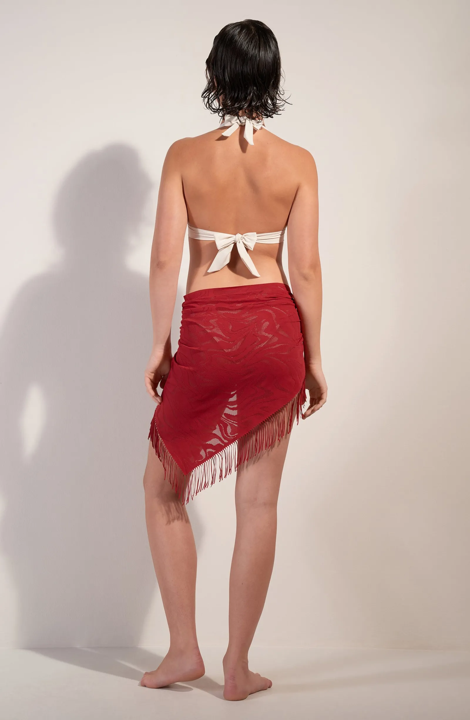 Élégant et léger, la paréo TRUDY en dentelle fine à franges est un essentiel. Placé sous le signe du grand large, son motif inspiré des ondes marines appelle à une liberté joyeuse. Garance, un rouge de caractère, nuance écarlate et séductrice.