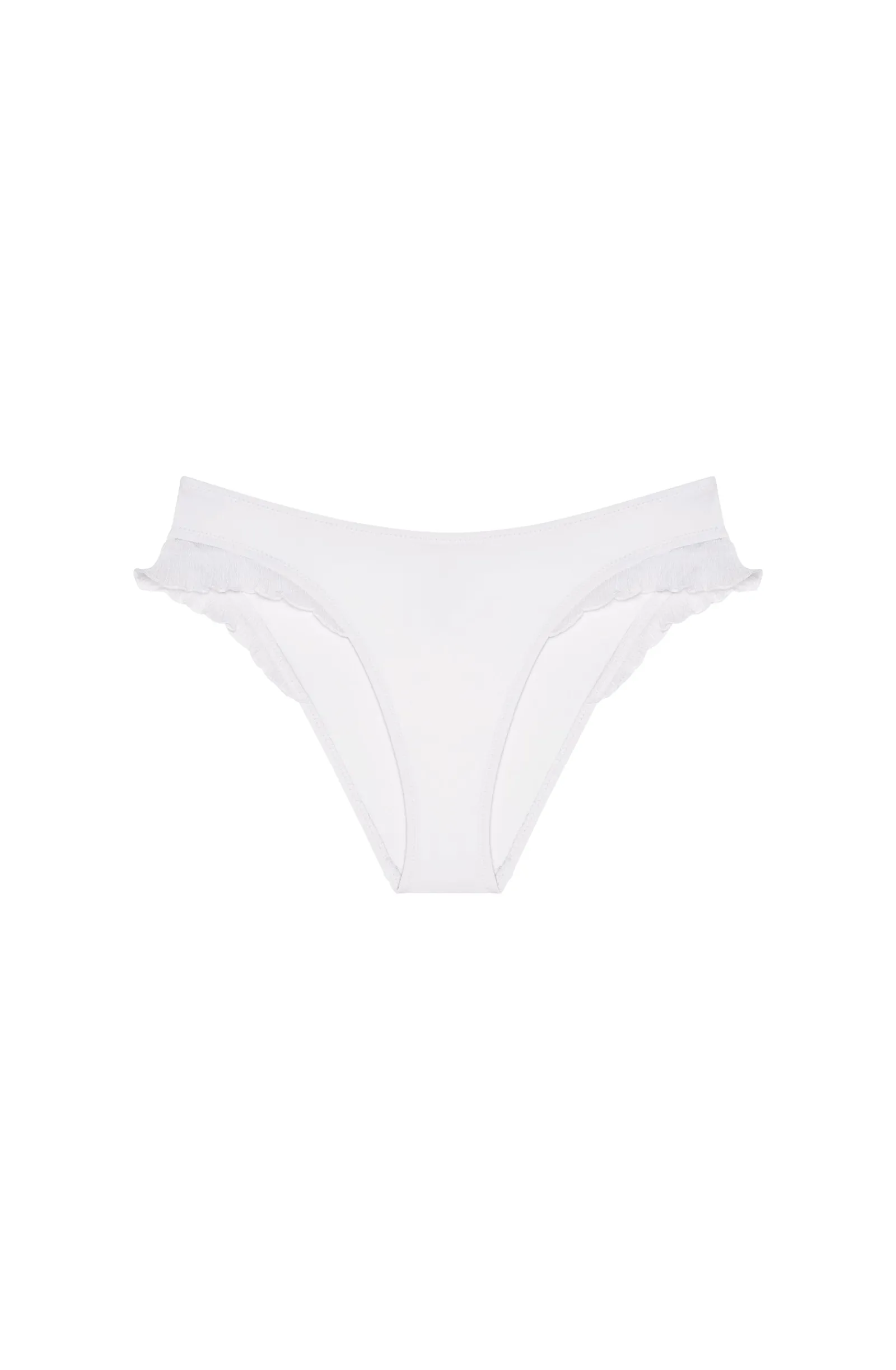 Avec sa coupe couvrante, le bas de maillot taille basse TYMA se pare de volants en mousseline plissée sur les côtés. Échancrée sur les hanches, cette culotte de bain allonge la silhouette en la sublimant. Pur et délicat, le blanc illumine le teint.