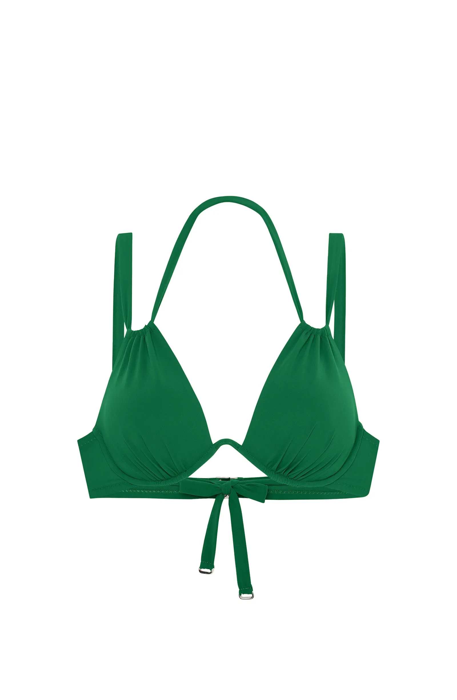 Avec son armature unique, dégagée entre les bonnets, le haut de maillot de bain VALEA est un modèle iconique indémodable. Moderne et raffiné, il se noue dans le dos et derrière la nuque pour s’ajuster parfaitement à la silhouette. Jade, un vert prononcé intensément doux et lumineux.