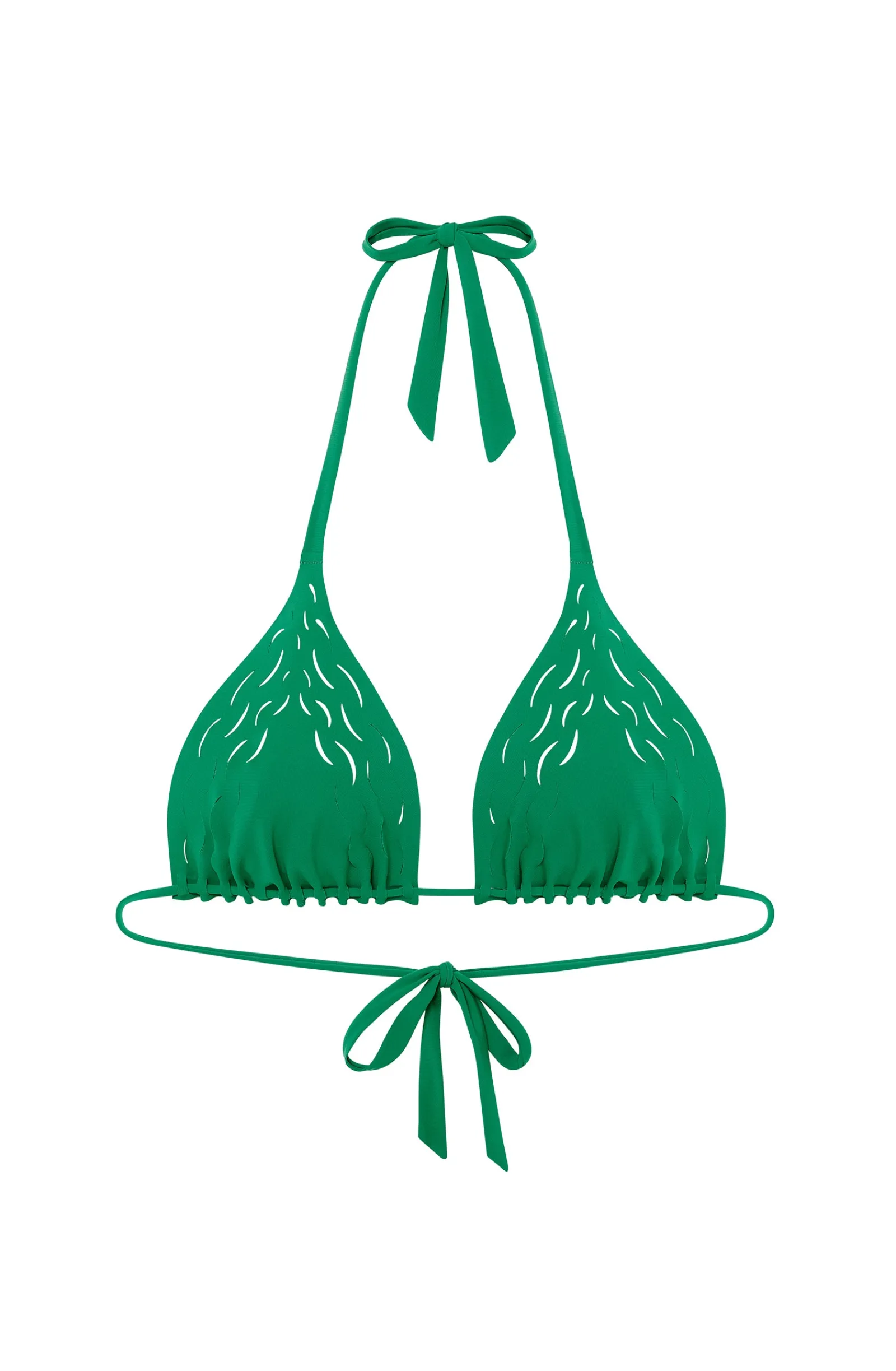 Avec son lien coulissant sous poitrine, le maillot de bain triangle WOOD s’ajuste à toutes les silhouettes. Dans un esprit couture, moderne et créatif, ce haut affiche des découpes laser créatives, rappelant avec douceur les ondes marines. Jade, un vert prononcé intensément doux et lumineux.