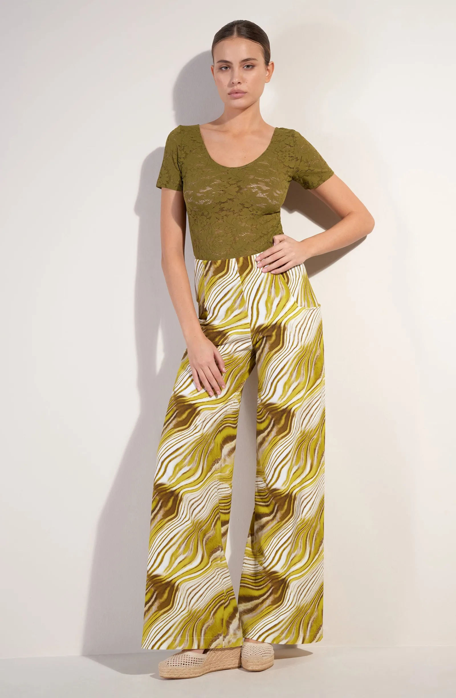 Le top manches courtes YANN est confectionné dans une dentelle stretch ultra confortable. Ce tee-shirt est un basique de la collection bodywear. Un décolleté échancré dévoile délicatement le dos. Bronze, une teinte minérale authentique, combinaison de jaune-vert.