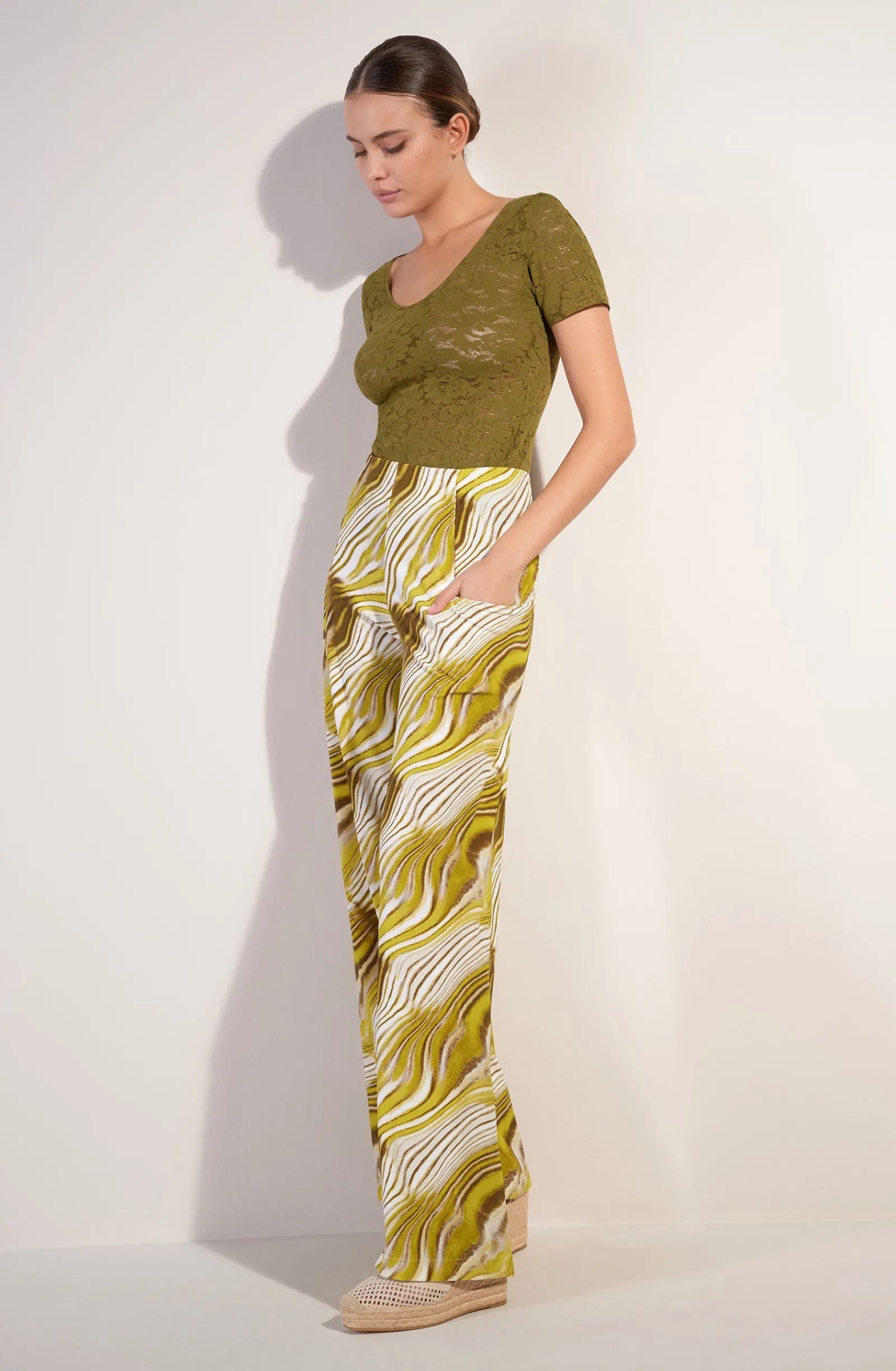 La mannequin studio mesure 1m76 et porte la taille S (Poitrine : 88 cm, Taille : 63 cm, Hanches : 94 cm)