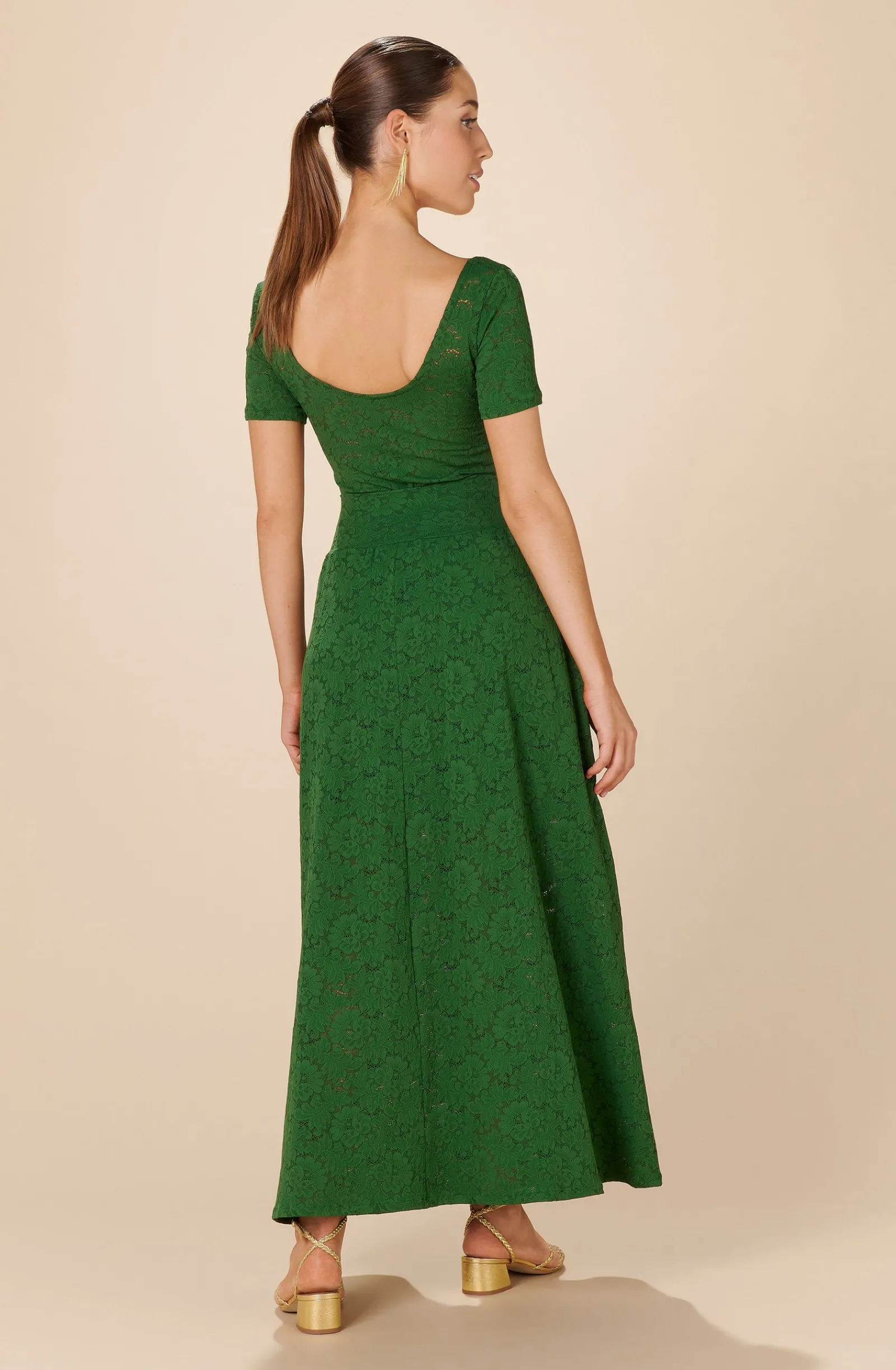 Le top manches courtes YANN est confectionné dans une dentelle stretch ultra confortable. Ce tee-shirt est un basique de la collection bodywear. Un décolleté échancré dévoile délicatement le dos. Un vert Olive, évocateur de la Provence et du soleil.