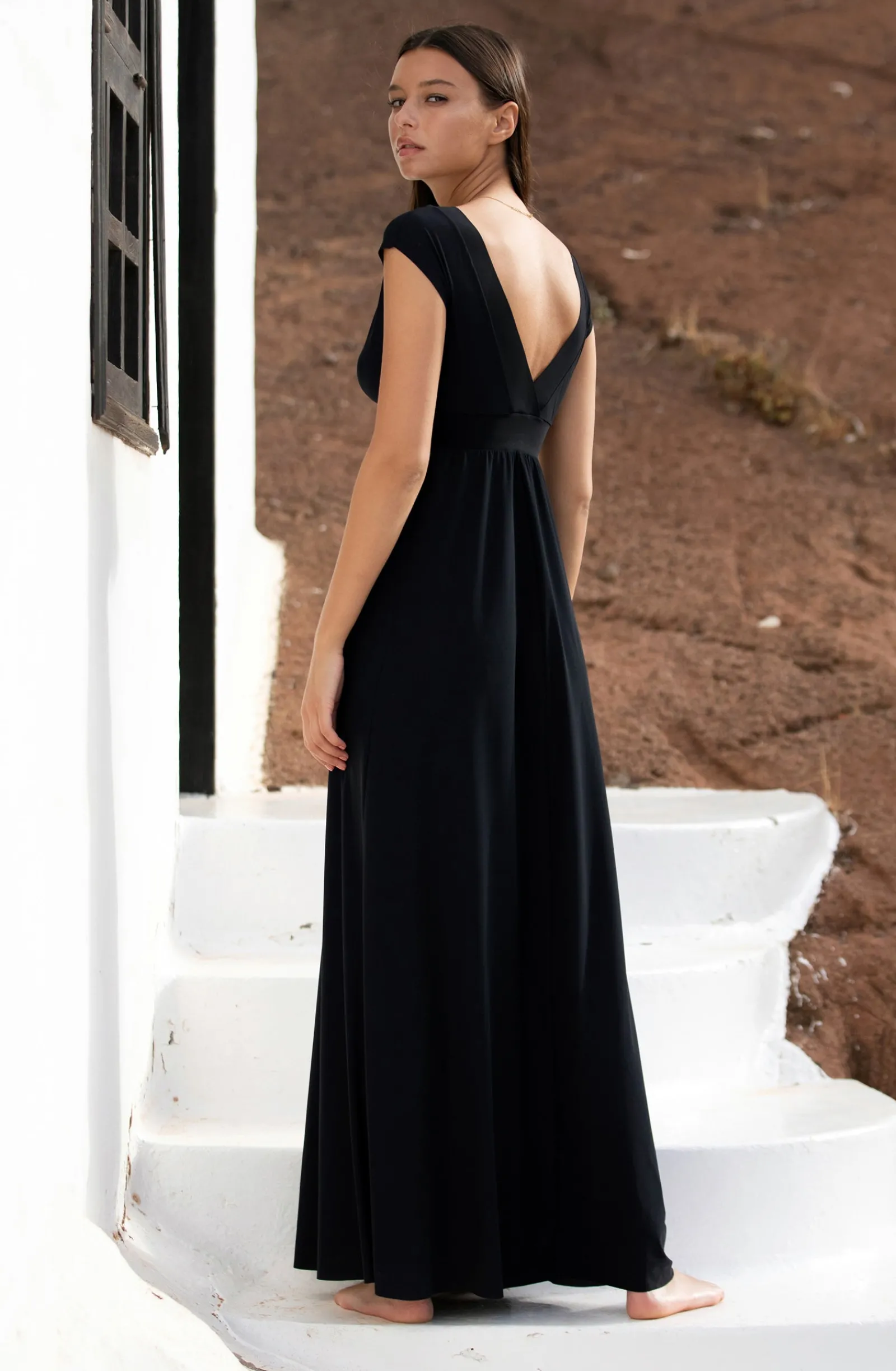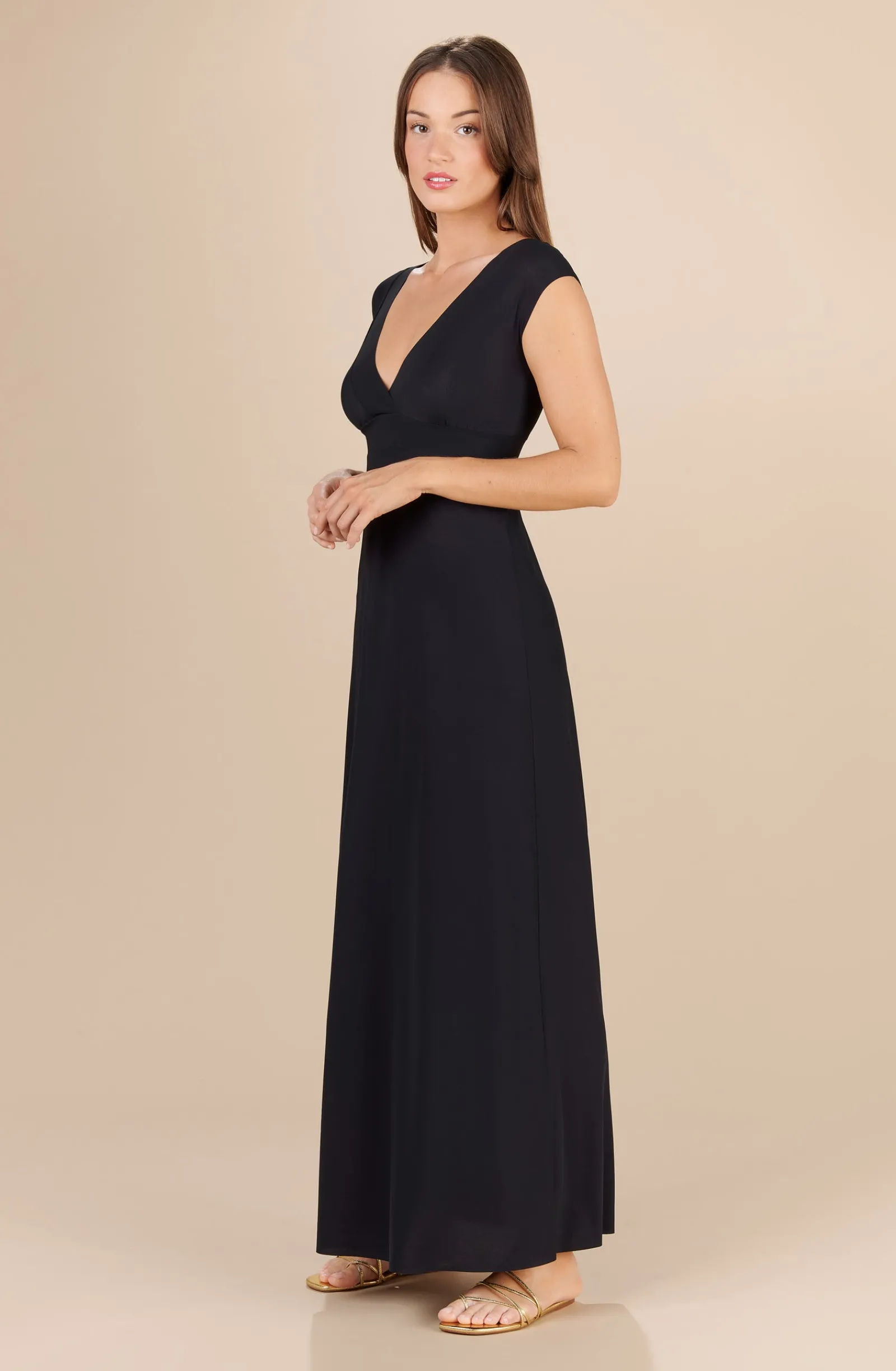 Avec ses profonds décolletés en V et ses petites manches, la robe longue ZAELIE noire offre une silhouette sculpturale. Ajustée à la taille et évasée en bas, cette robe monochrome est un essentiel qui se porte en toute occasion. Indémodable et toujours élégant, le noir met en valeur toutes les morphologies