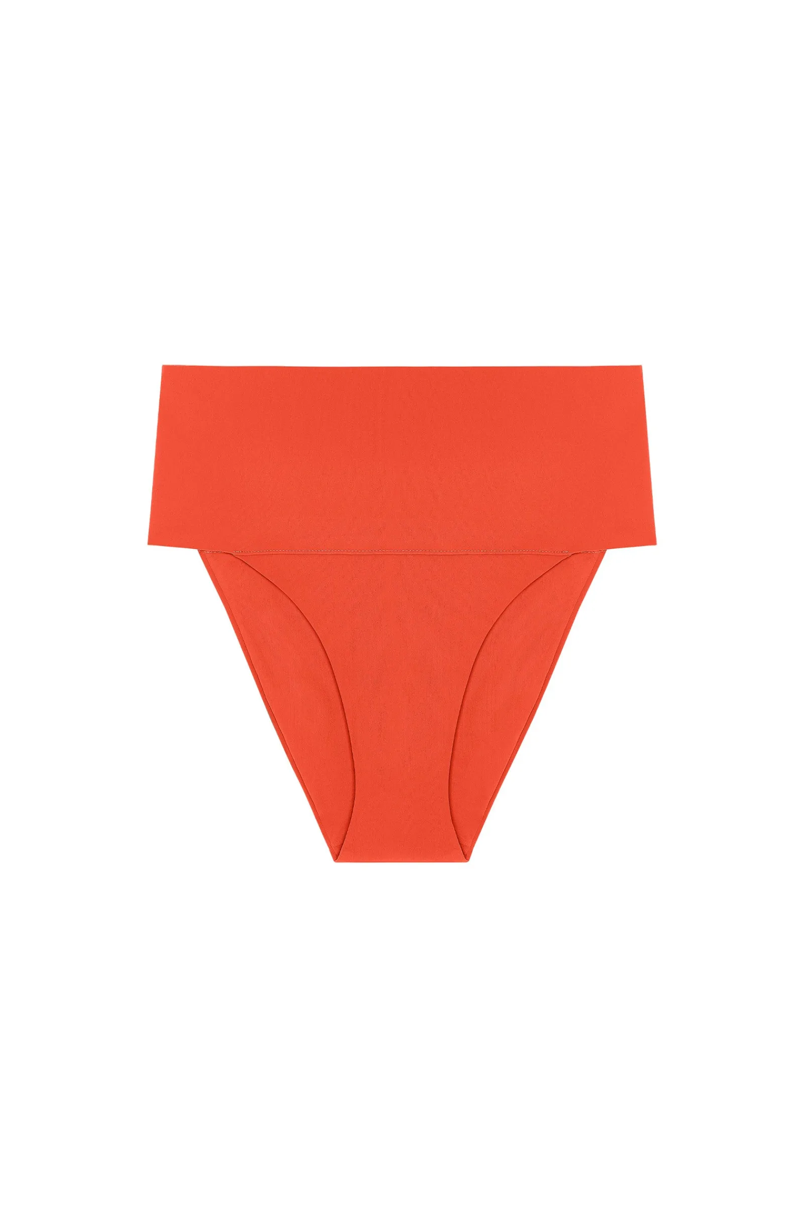 - Bas de maillot taille haute droite avec large bande rabattable en bonded