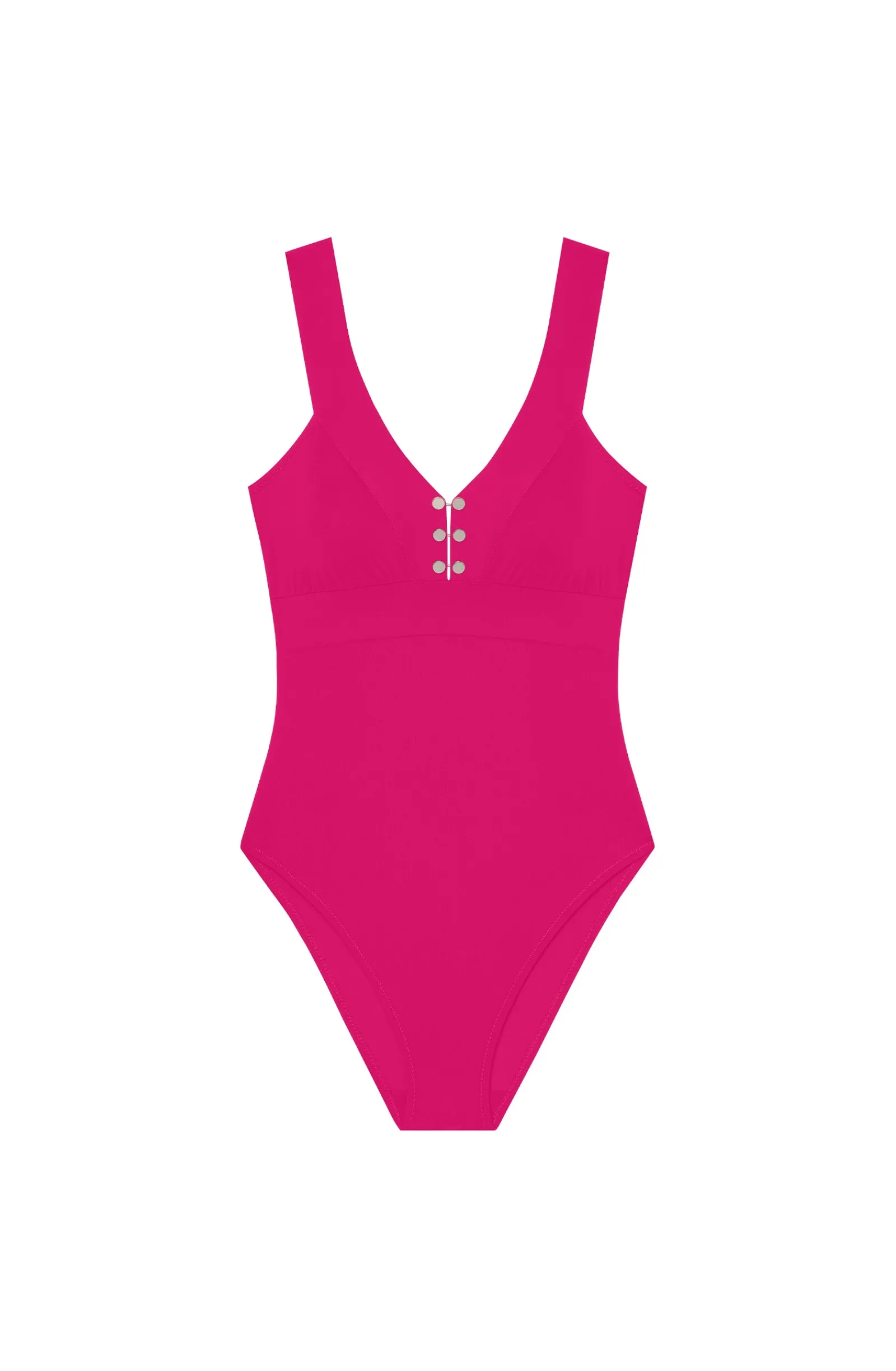 Le maillot nageur une pièce ANTON revisite l’iconique PIPPER, modèle emblématique de la maison Pain de Sucre. Sobre et graphique, l’entre-seins s’agrémente de boutons de manchettes argentés réversibles. Des accessoires raffinés pour personnaliser le décolleté. Framboise, un rose incandescent et délicieusement sucré.