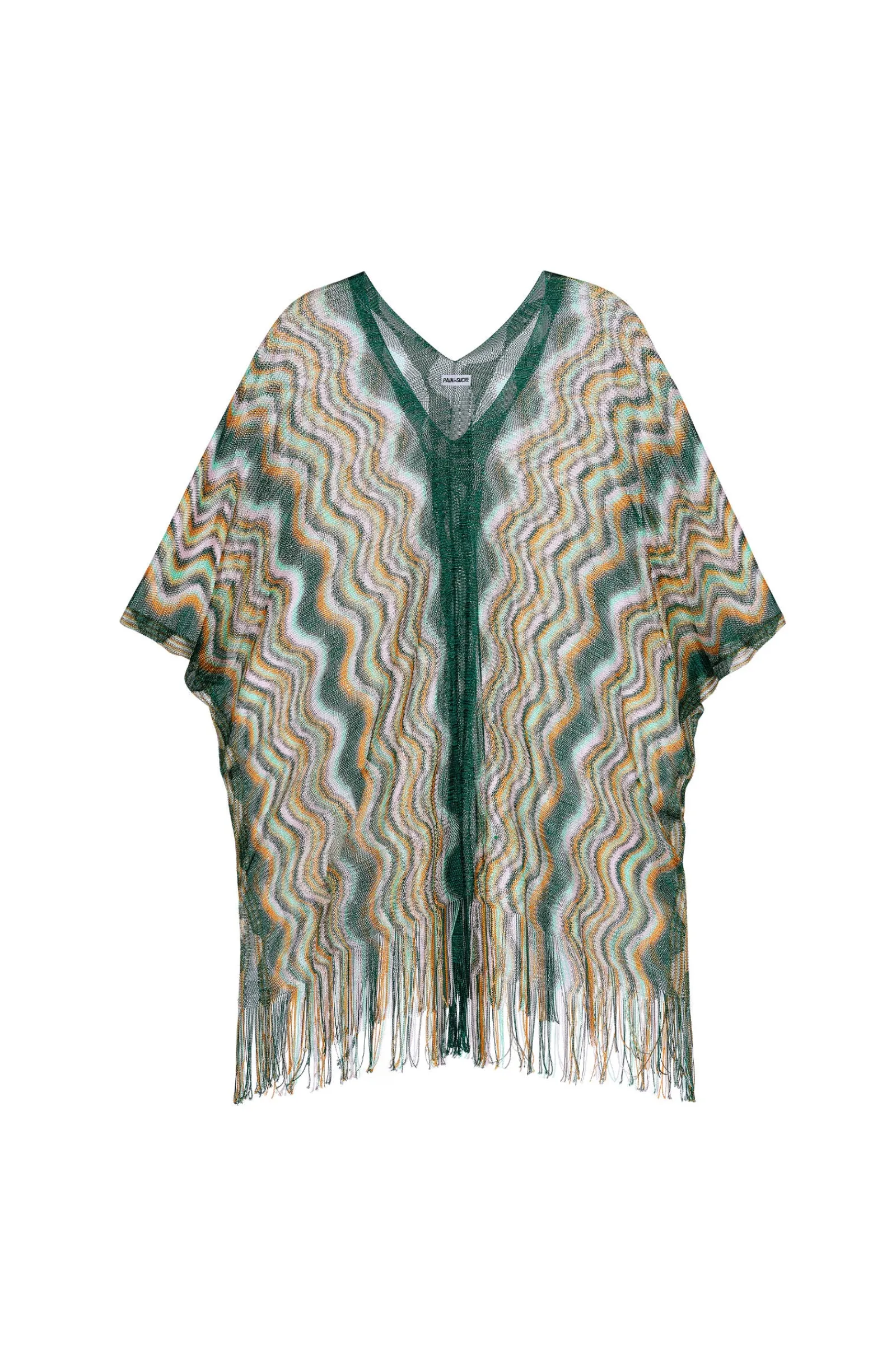- Poncho semi-transparent en fine résille zig-zag multicolore