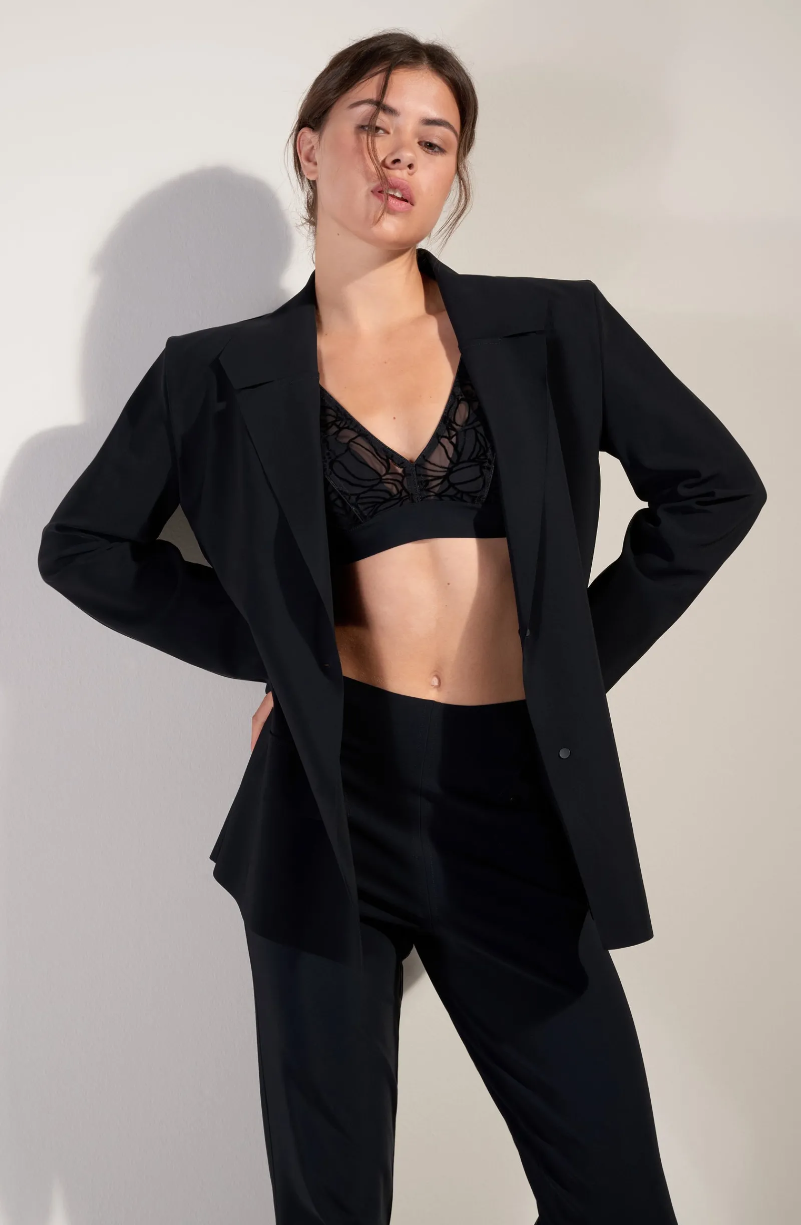 Équilibre parfait entre décontraction et allure, le blazer Blake structure une silhouette affirmée. Taille oversize, large encolure, épaulettes gonflées, poches en trompe-l’œil, cette pièce de caractère allie, avec style, élégance et liberté. Le noir, une couleur intemporelle.