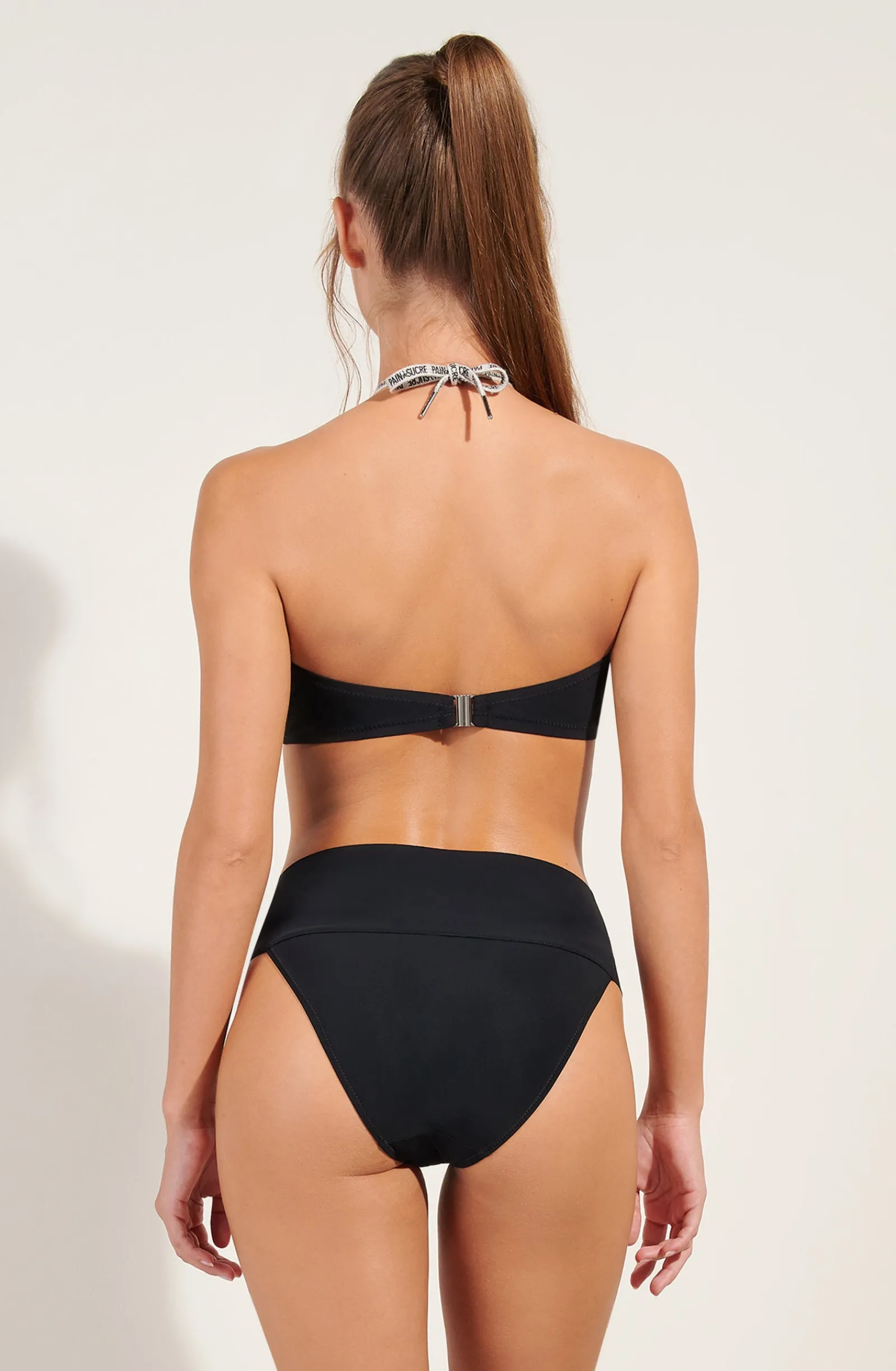 Le bas de maillot CALIO couvre la taille pour souligner avec allure les courbes féminines. Cette culotte de bain se pare d’un fin laçage griffé du logo Pain de Sucre ou d’un lacet assorti en bonded. Il s’ajuste parfaitement aux formes pour mettre en valeur les hanches. Le noir, une couleur intemporelle et toujours élégante.