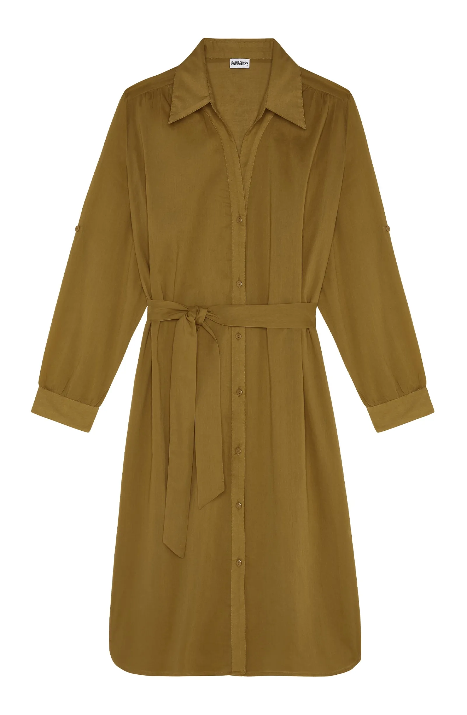 Avec sa coupe droite oversize et ses longues manches qui peuvent se retrousser, la robe chemise ceinturée CASSANDRE s’adapte à toutes les morphologies. Habillé et décontracté, ce basique se porte en toutes occasions. Bronze, une teinte minérale authentique, combinaison de jaune-vert.
