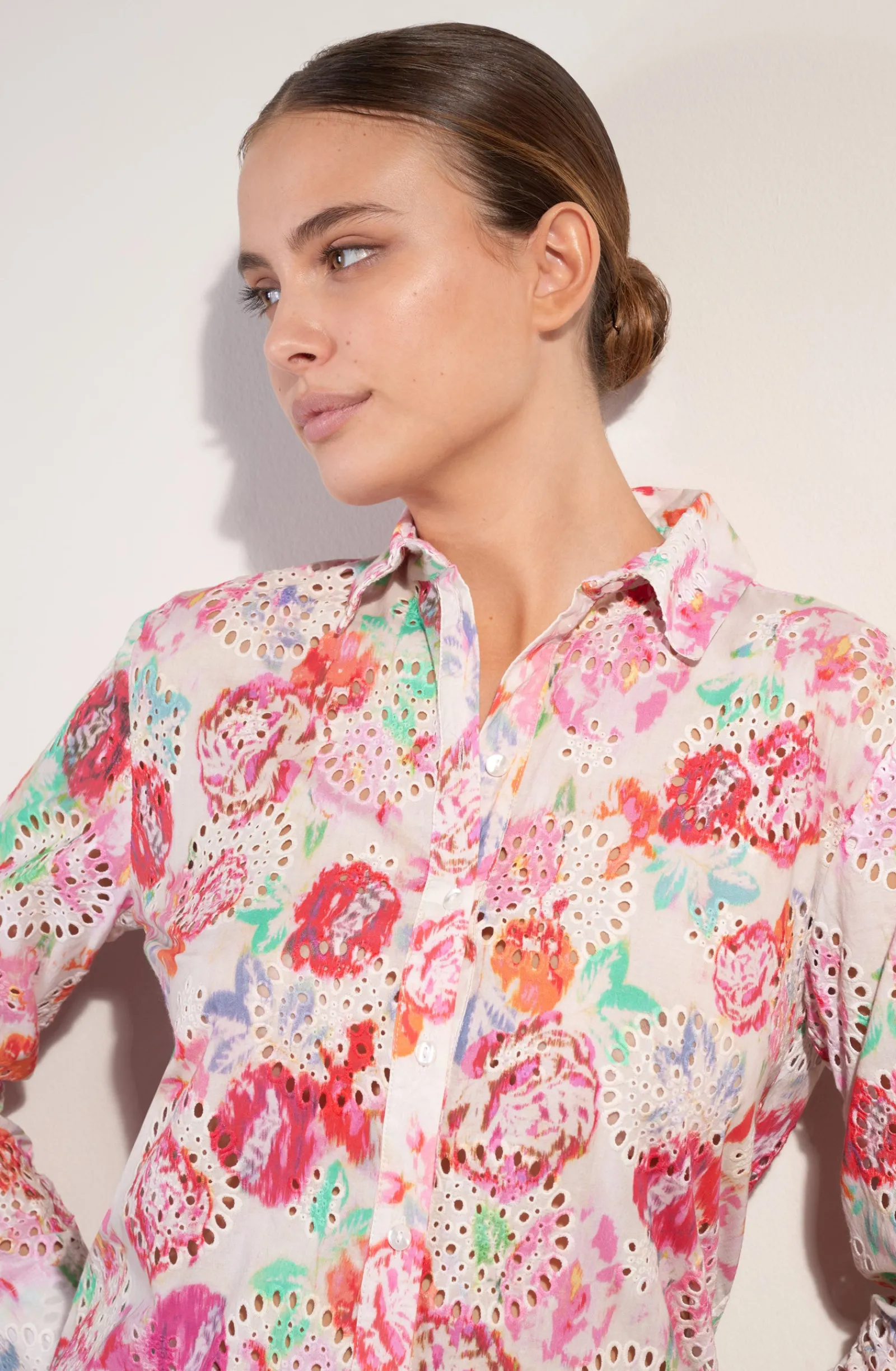 - Broderie anglaise avec imprimé GARDEN motifs fleuris délicats