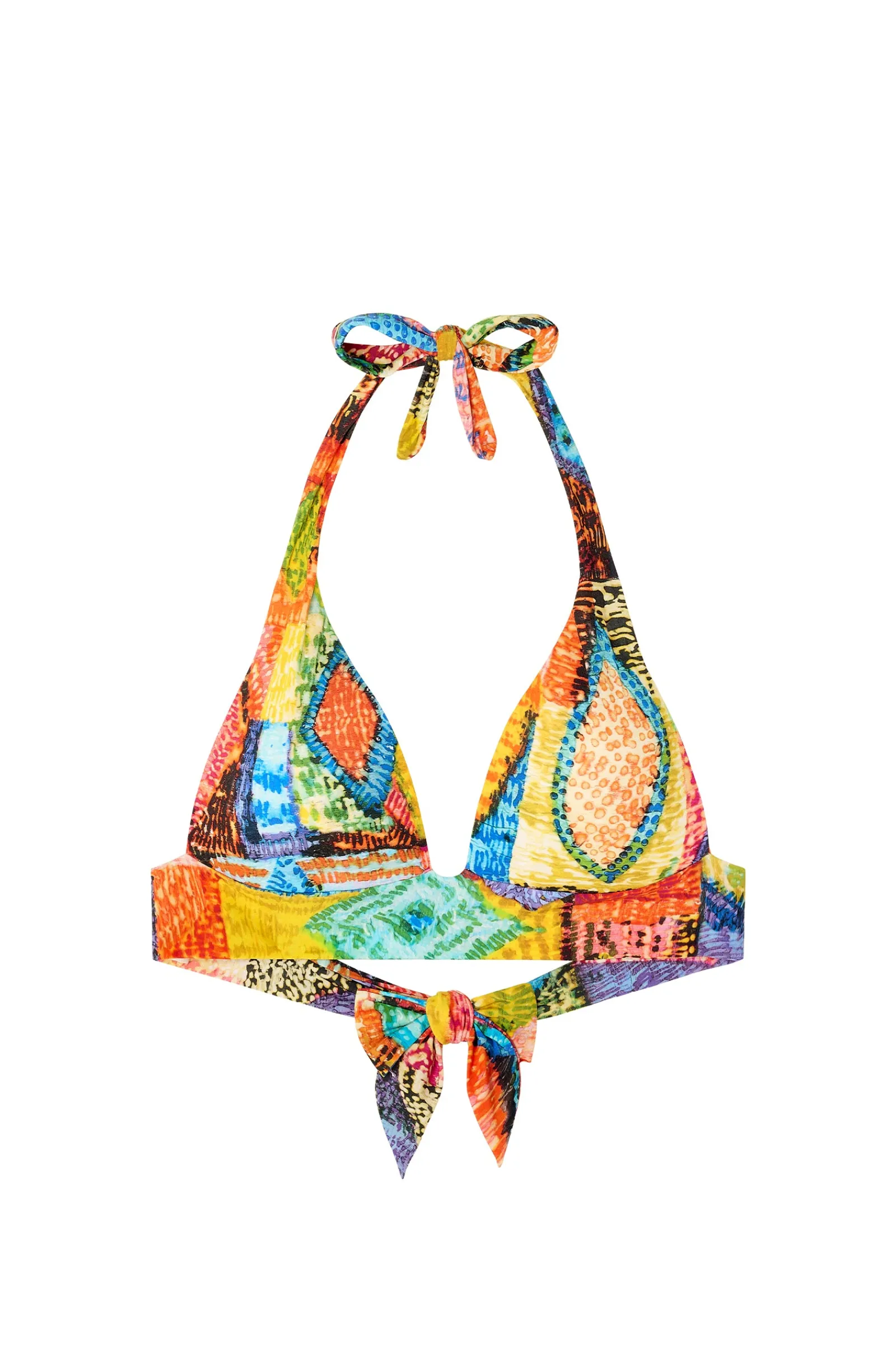 Le haut de maillot de bain triangle DIVA est une pièce signature de la maison PAIN DE SUCRE. Son effet push-up met en valeur le décolleté… De larges liens nouables dans la nuque et dans le dos seront gage de maintien et de confort. Une bande sous poitrine donne à ce modèle une note sportswear raffinée tout en subtilité, et souligne votre tour de buste avec élégance. Festival de couleurs tel un sacre de printemps indien, l’imprimé Holi nous enivre de parfums lointains et nous submerge d’effluves épicés.