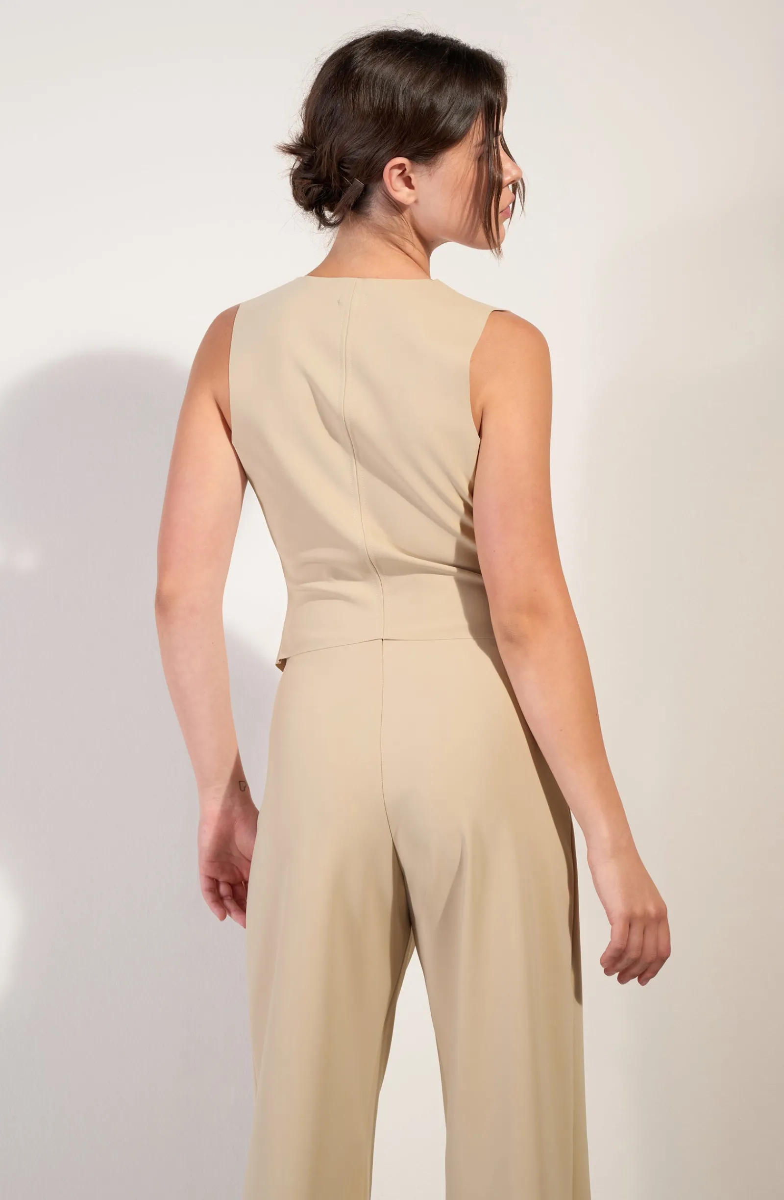 Allure sophistiquée avec le gilet en Bonded GABIE. Inspirant un look féminin masculin, ce top cintré s’ajuste au-devant par de petits boutons amovibles, ton sur ton.