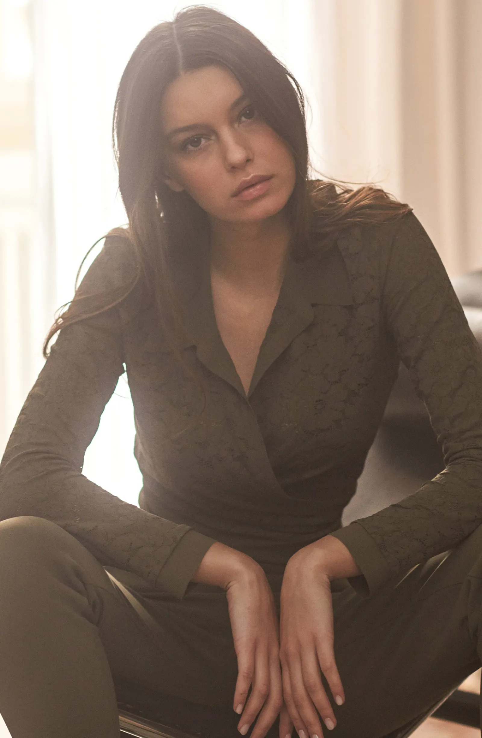 Avec son col et ses poignets en Bonded, le cache-cœur en dentelle LIHO a des airs de chemise. Sa large ceinture se noue facilement pour s’ajuster parfaitement à la taille. Lichen, une teinte organique, vert kaki.