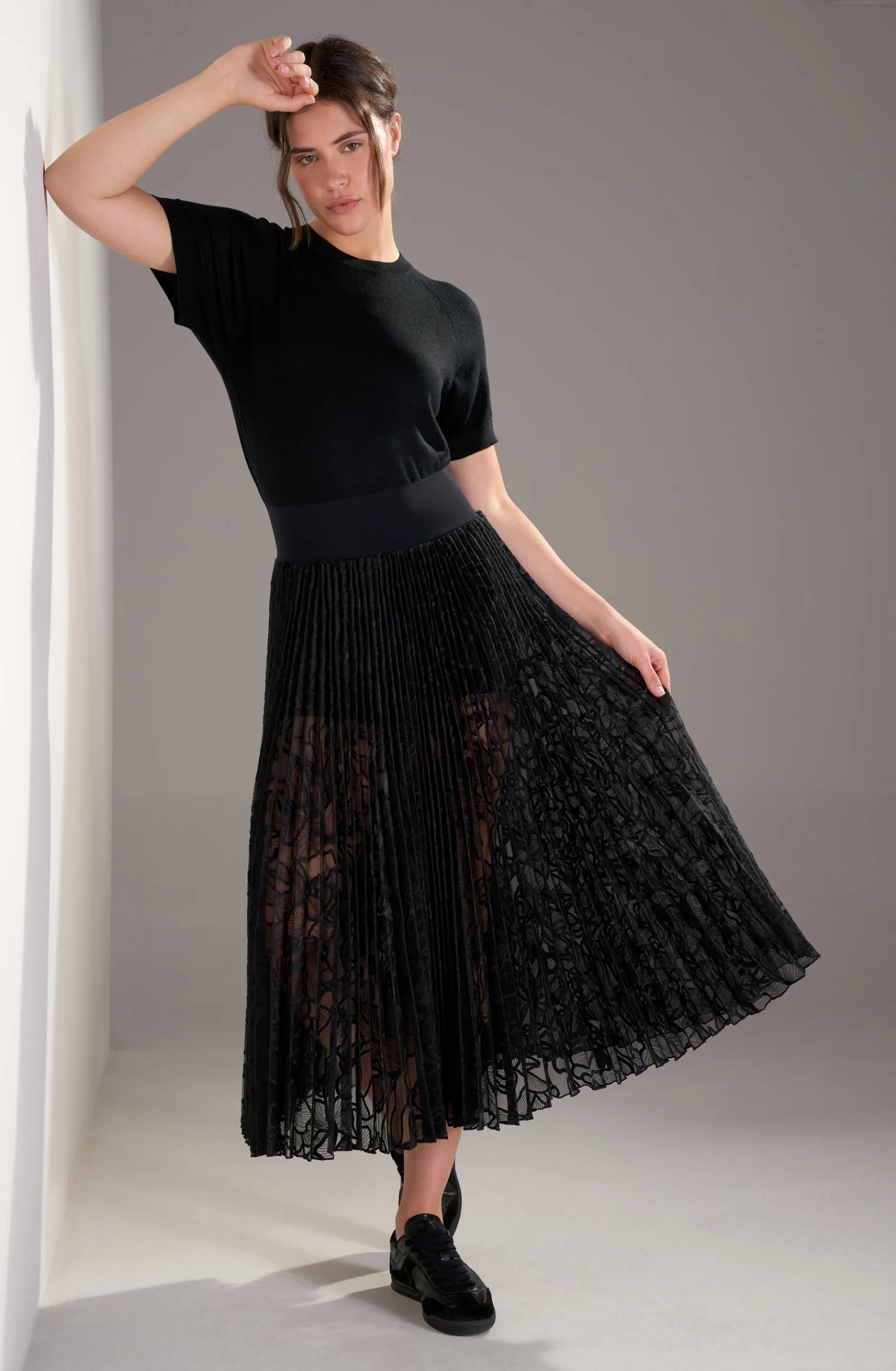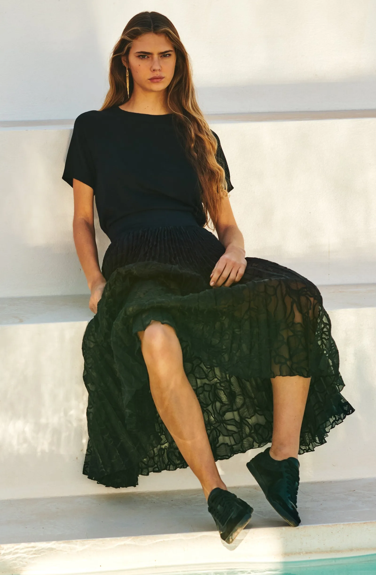 La mannequin studio mesure 1m76 et porte la taille XS.