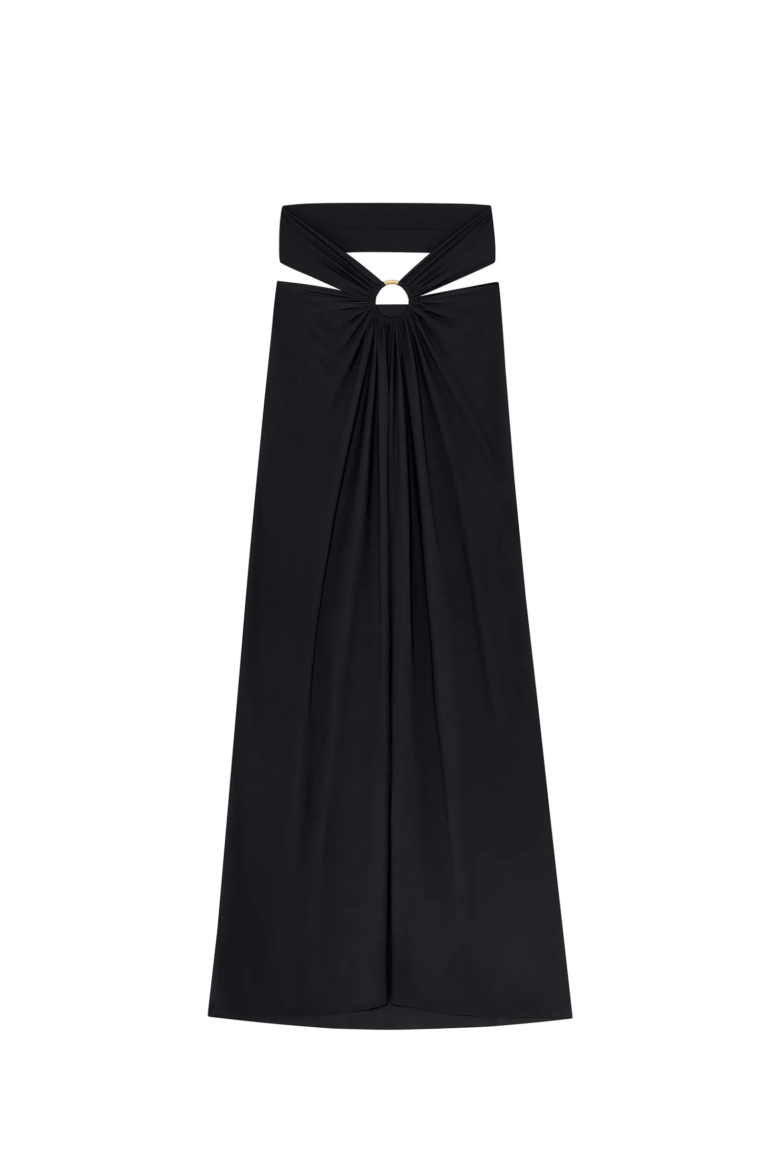 Agrémentée d’un anneau bijou, la jupe paréo PETRA change de style avec élégance. Version jupe, ses lanières s’attachent joliment autour de la taille. Elles se nouent autour des épaules pour une robe de plage bustier à l’allure très féminine. Indémodable, le noir met en valeur toutes les morphologies.