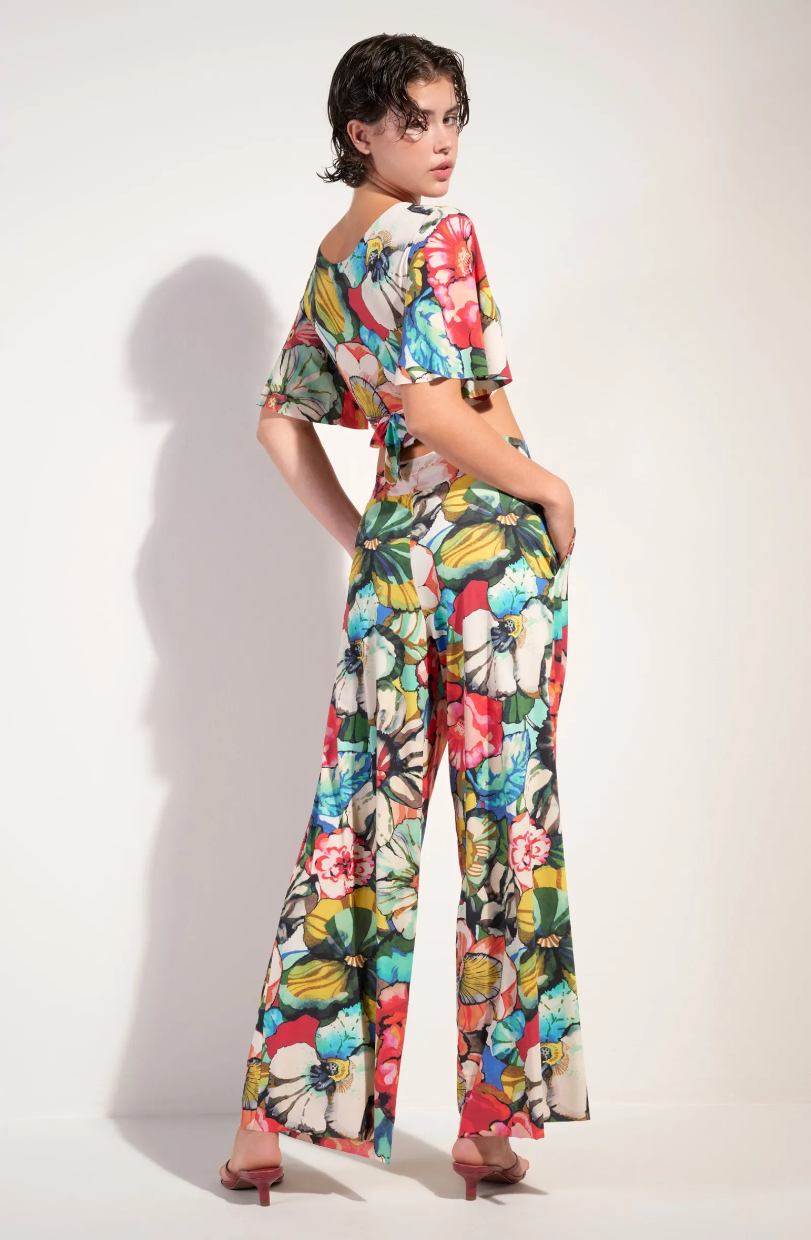 Le voile extensible du pantalon ample PITTA habille la silhouette avec légèreté. La large ceinture élastiquée à la taille et les petites poches plaquées offrent à ce bas une allure infiniment décontractée. L’imprimé Flower, une nature exubérante où les fleurs aux couleurs chatoyantes incarnent l’esprit Flower Power. Une invitation à embrasser la vie…