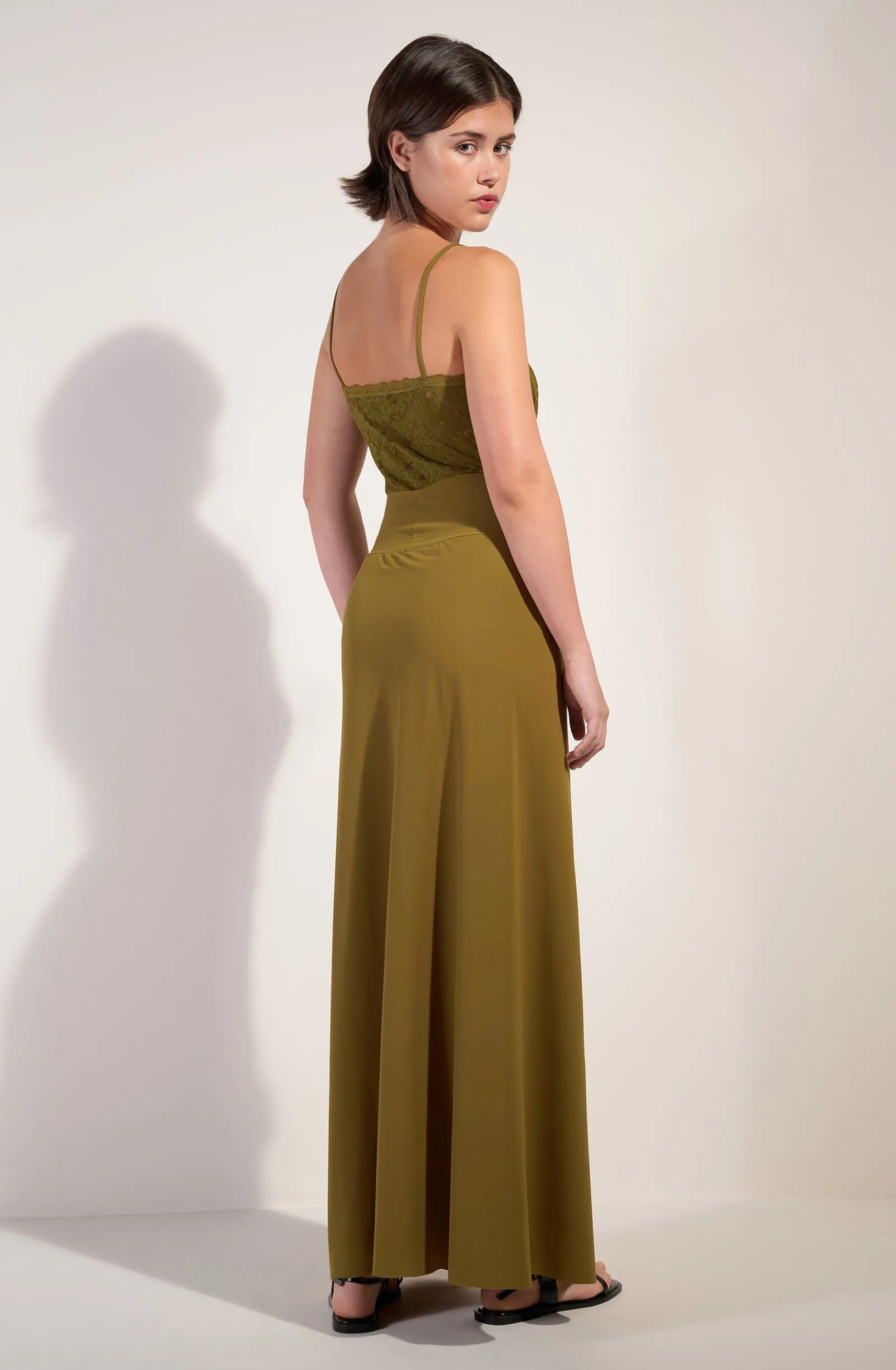 La mannequin studio mesure 1m76 et porte la taille XS (Poitrine : 83 cm, Taille : 62 cm, Hanches : 91 cm)