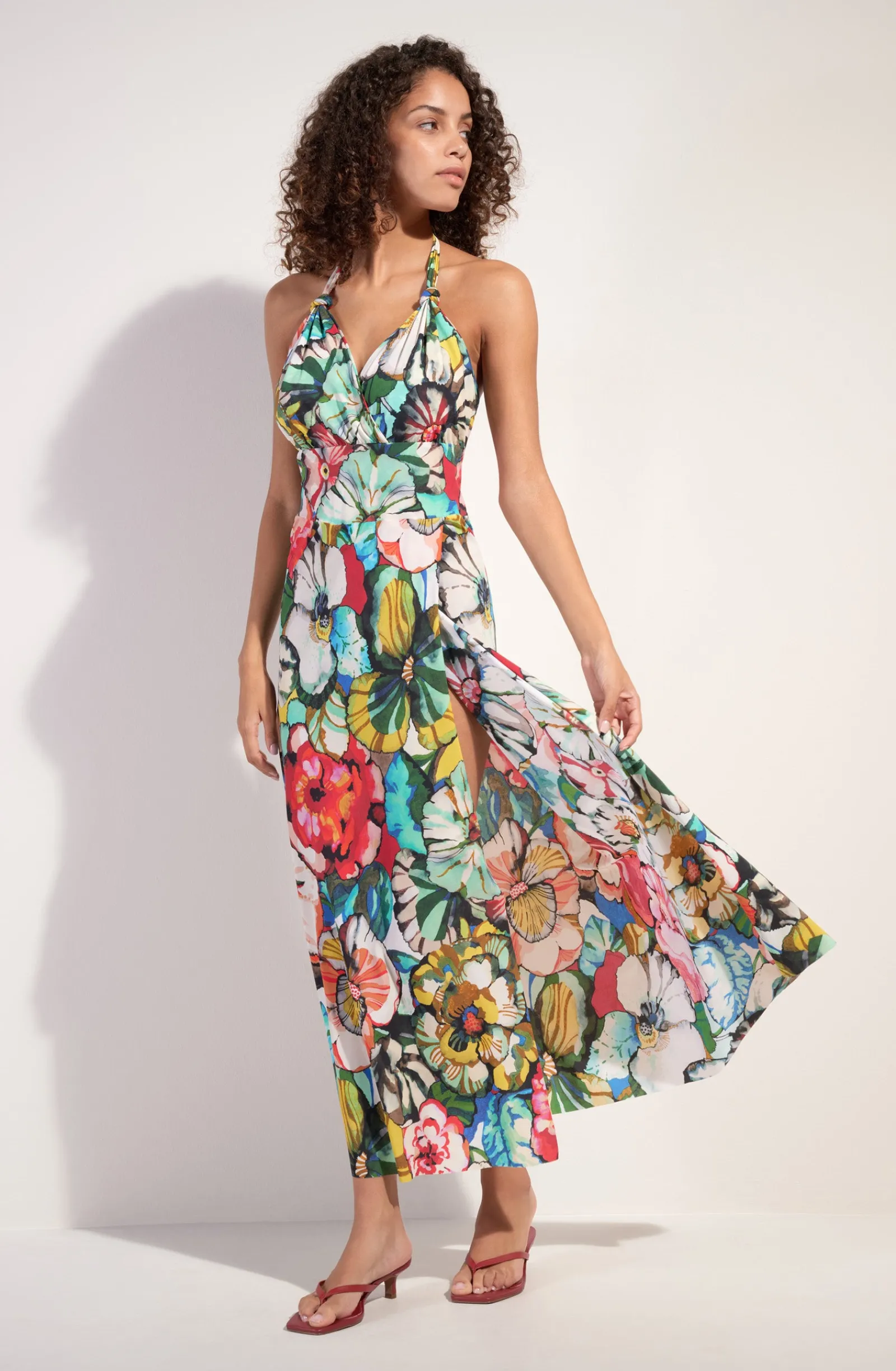 La robe ample RONA sublime les formes avec délicatesse. Son haut effet cache coeur met en valeur le décolleté et sa large ceinture souligne la taille. Fluide et léger, le voile de cette robe dos nu garantit confort et fraîcheur. Un must have pour affronter les fortes chaleurs estivales. L’imprimé Flower, une nature exubérante où les fleurs aux couleurs chatoyantes incarnent l’esprit Flower Power. Une invitation à embrasser la vie…