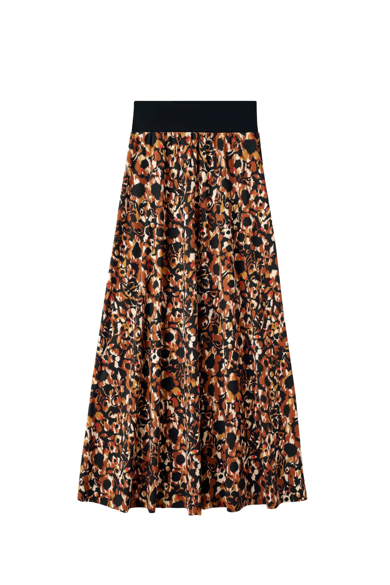 Jupe longue en voile léger imprimé à fleursCeinture en Bonded noir coupé bord franc