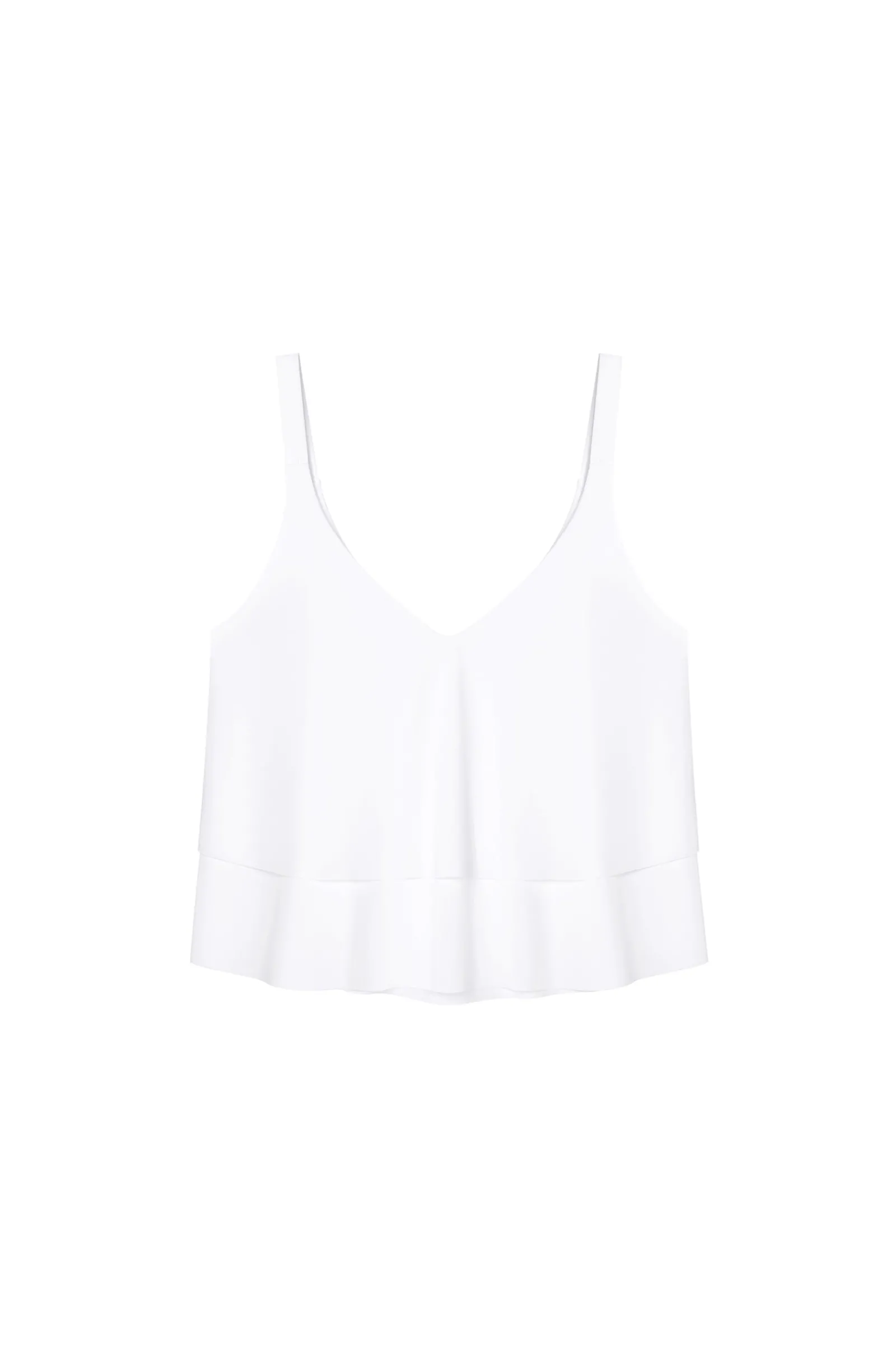 Simplicité des matières fluides et jeu de superpositions, le petit top TEA offre une silhouette toute en relief. Devant et dans le dos, de larges décolletés dynamisent les formes. Pur et délicat, le blanc illumine le teint.