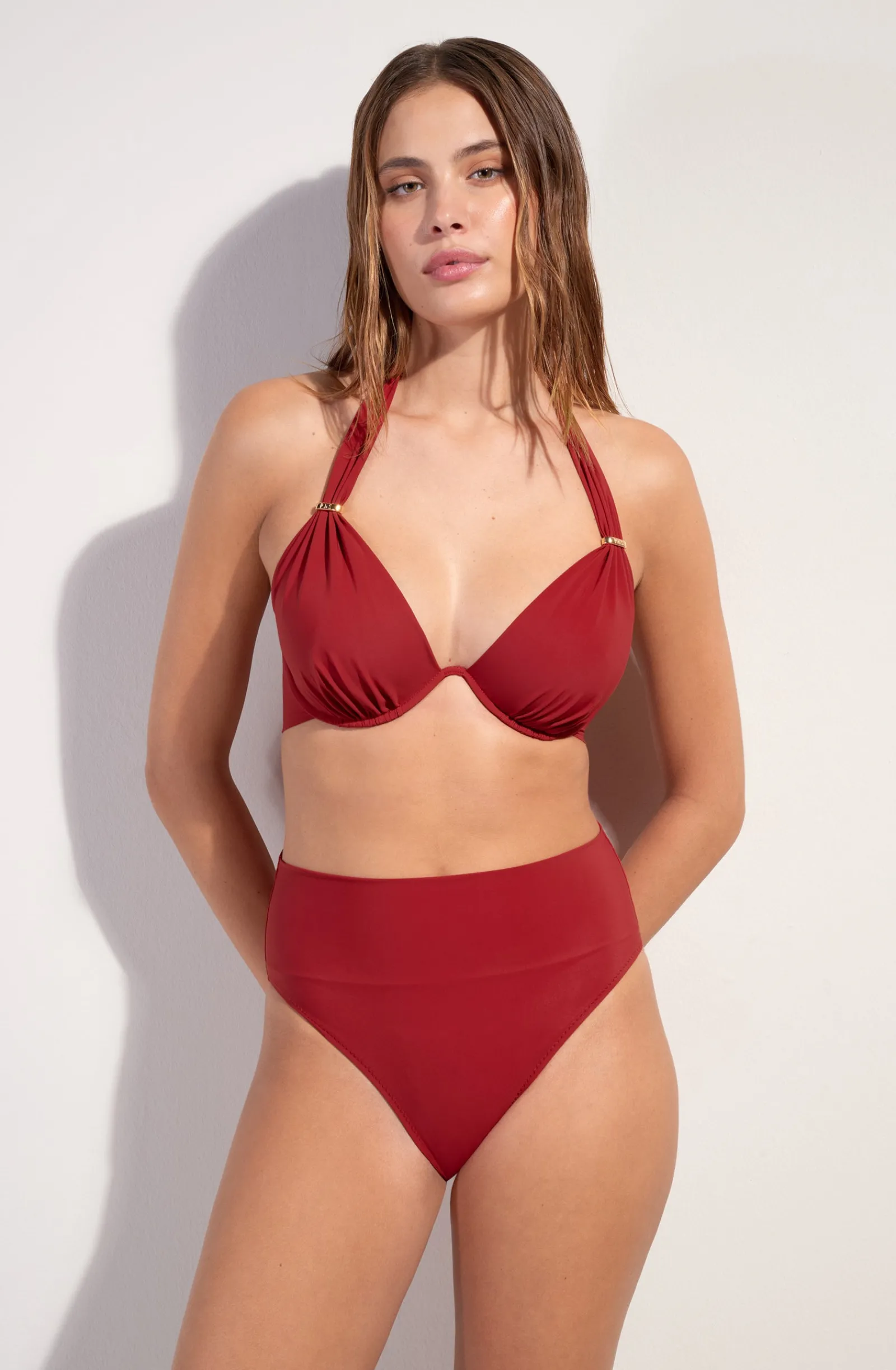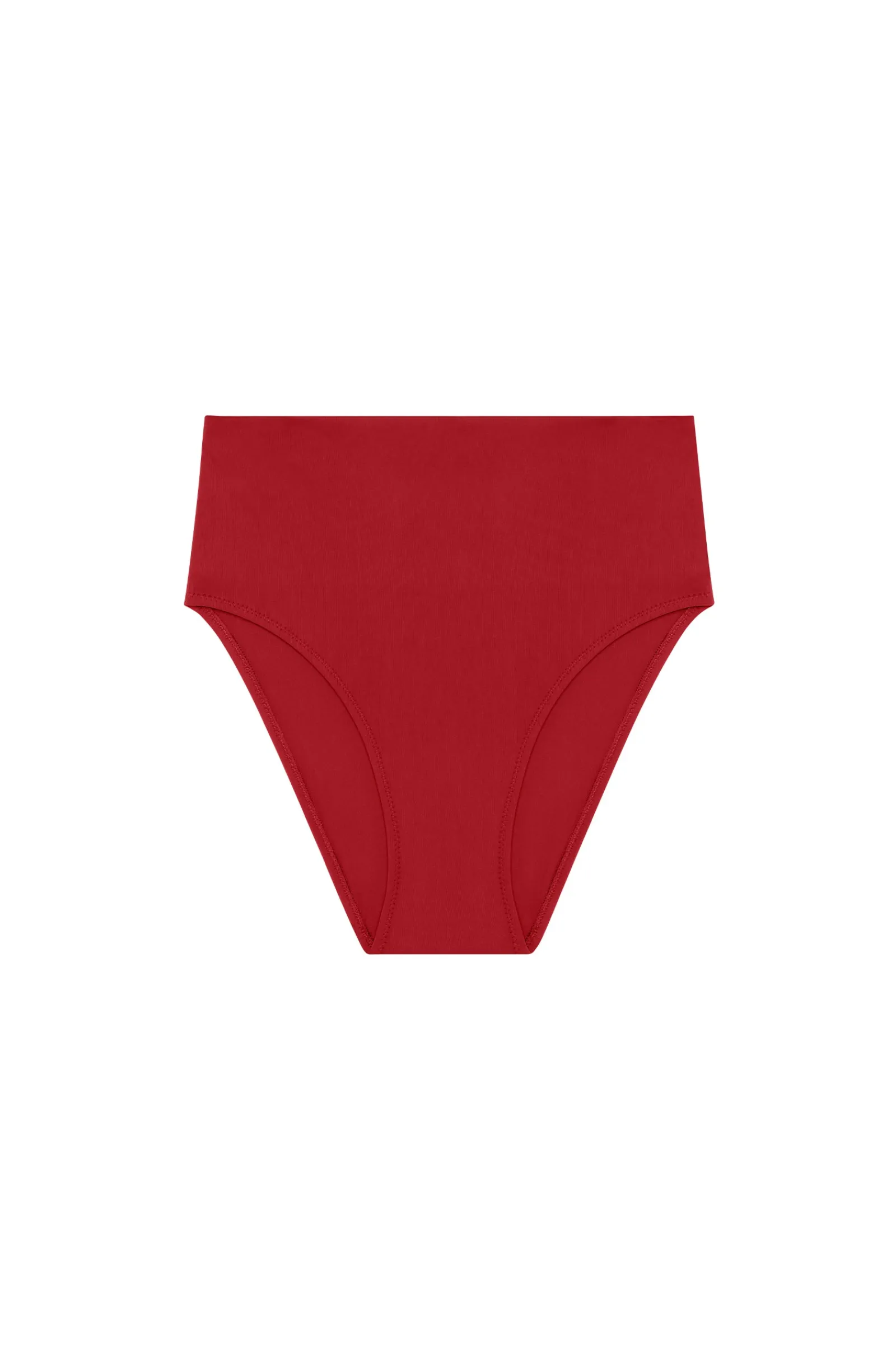 Avec son allure rétro, le bas de maillot de bain TOBAGO se porte taille haute pour une silhouette de pin-up. Pour révéler les courbes féminines avec charme, sa ceinture se rabat sur les hanches pour former une culotte de bain taille basse. Un modèle iconique de PAIN DE SUCRE. Garance, un rouge de caractère, nuance écarlate et séductrice.
