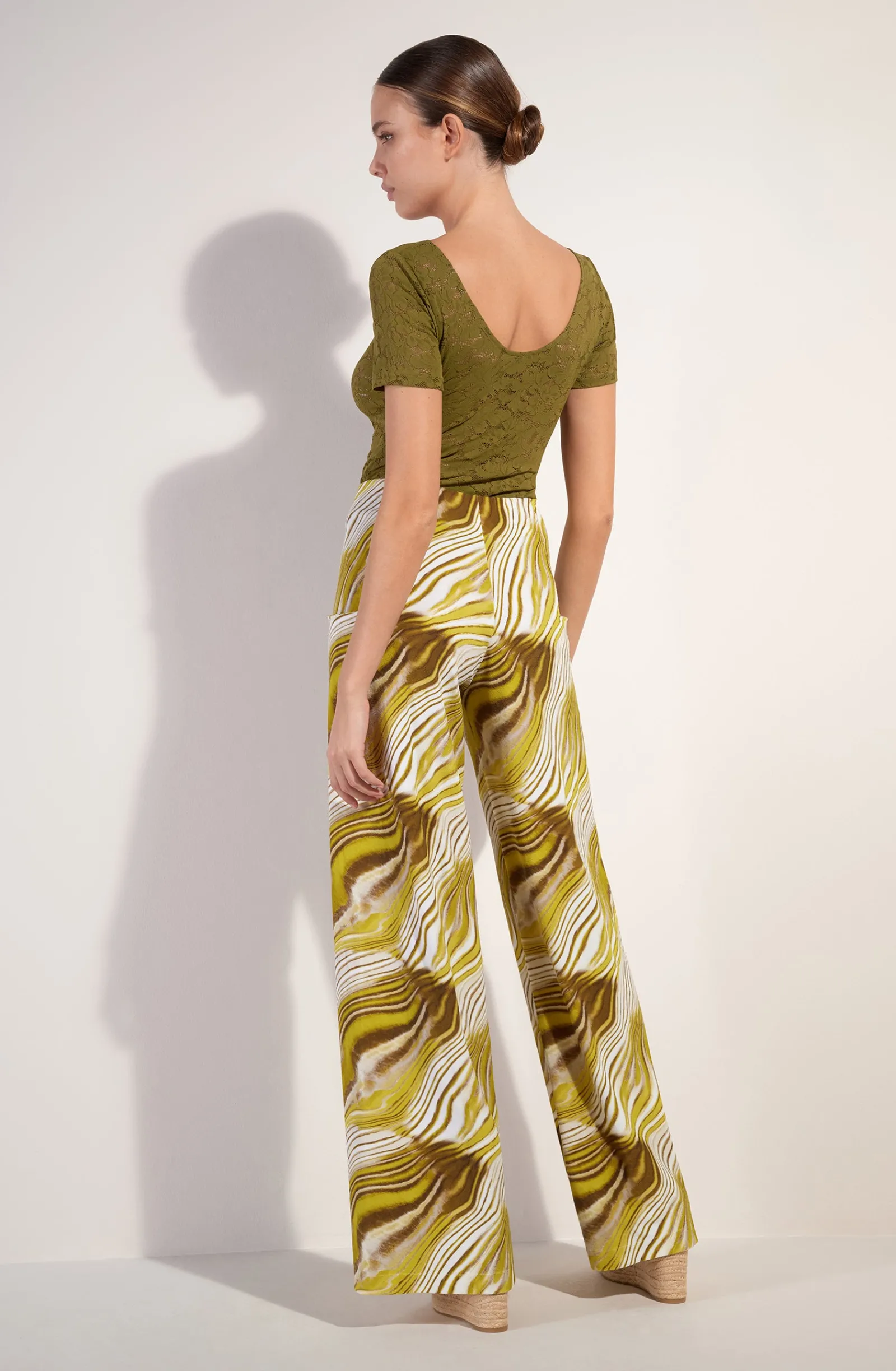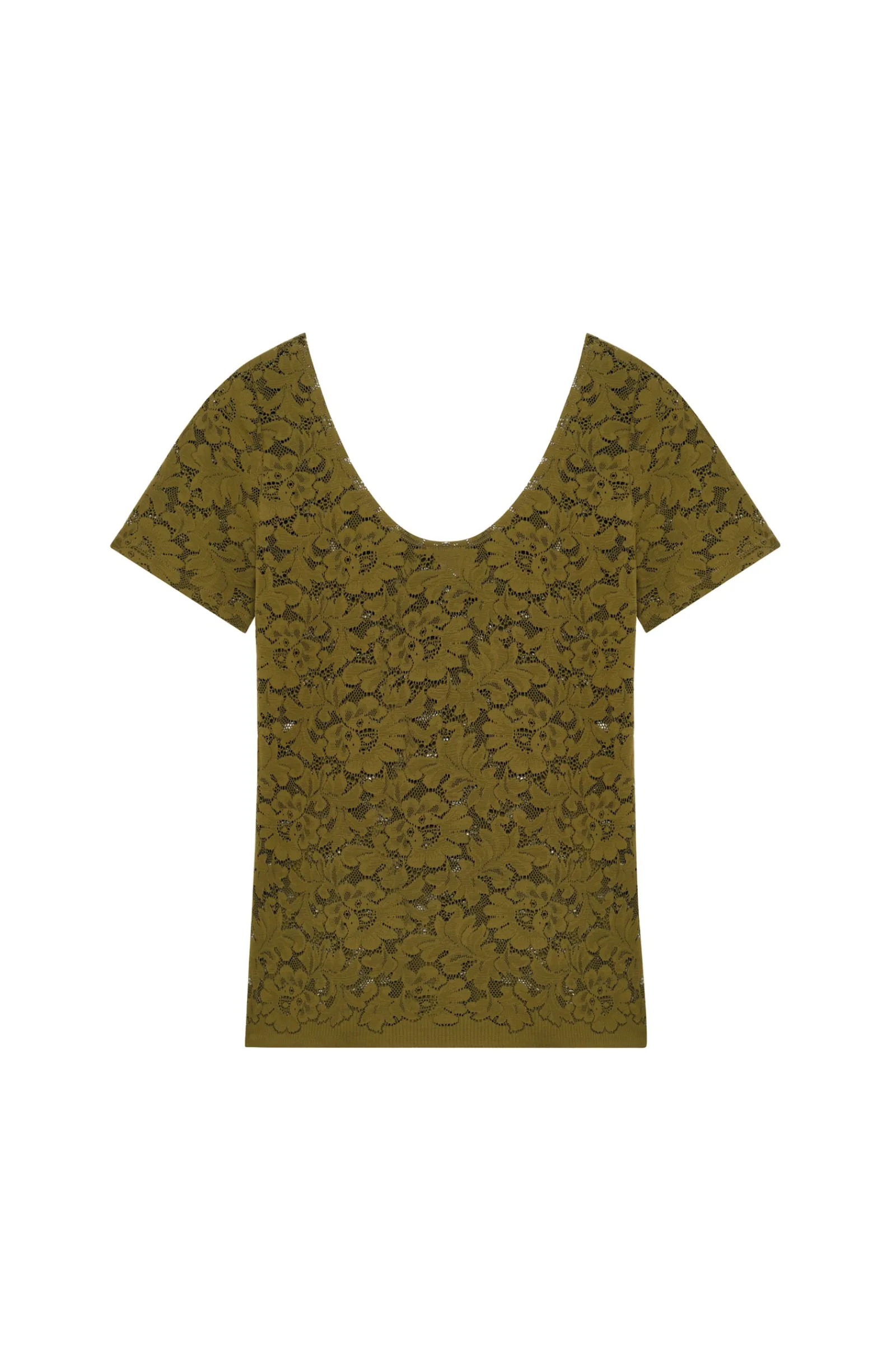 Le top manches courtes YANN est confectionné dans une dentelle stretch ultra confortable. Ce tee-shirt est un basique de la collection bodywear. Un décolleté échancré dévoile délicatement le dos. Bronze, une teinte minérale authentique, combinaison de jaune-vert.