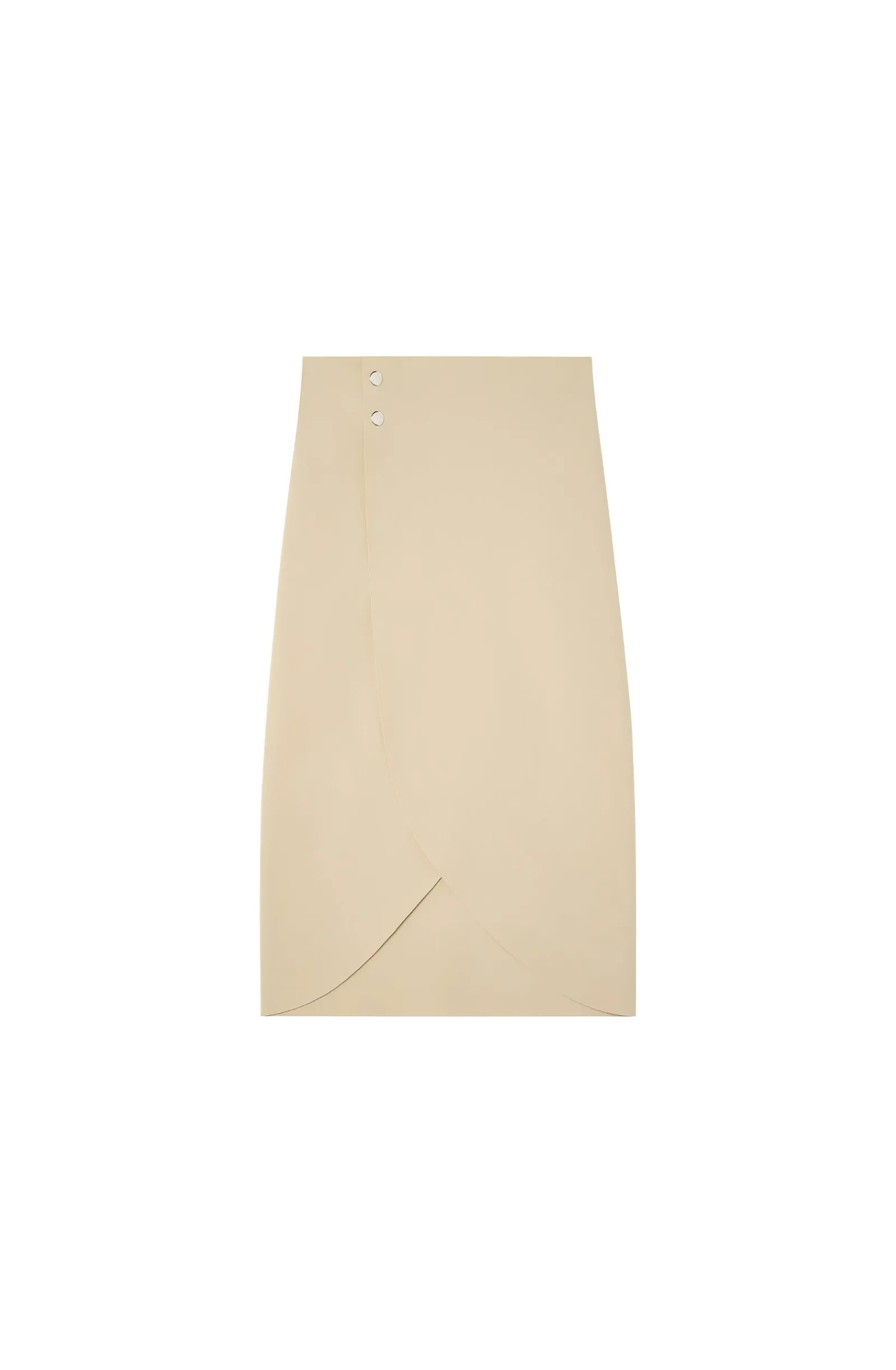 La jupe tulipe Yonha joue d’asymétrie pour une silhouette affirmée. Deux boutons-tiges argentés soulignent la taille avec délicatesse. La coupe sans couture a été pensée pour épouser chaque mouvement avec harmonie. Sable, un coloris naturel et lumineux.