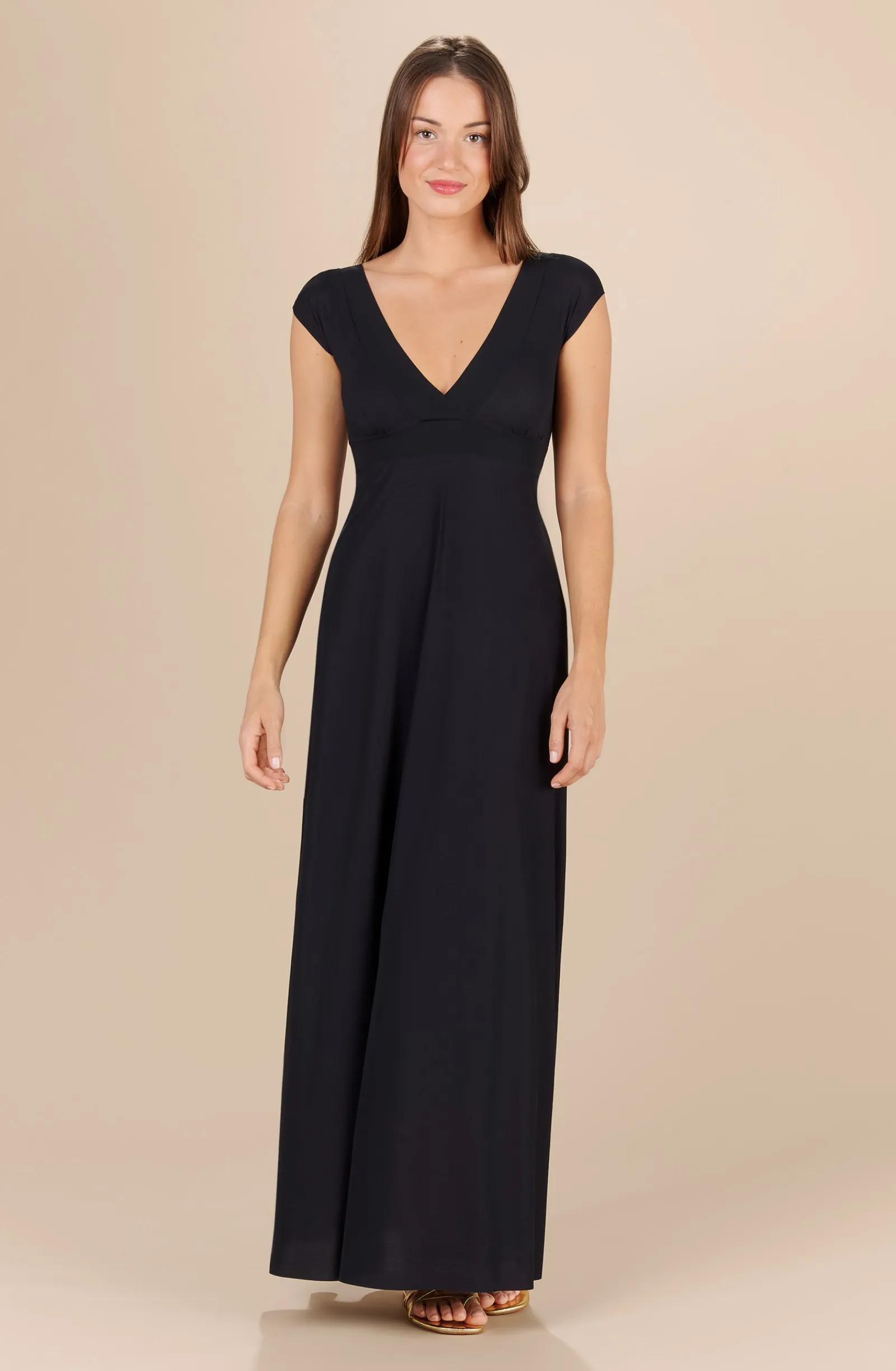 Avec ses profonds décolletés en V et ses petites manches, la robe longue ZAELIE noire offre une silhouette sculpturale. Ajustée à la taille et évasée en bas, cette robe monochrome est un essentiel qui se porte en toute occasion. Indémodable et toujours élégant, le noir met en valeur toutes les morphologies